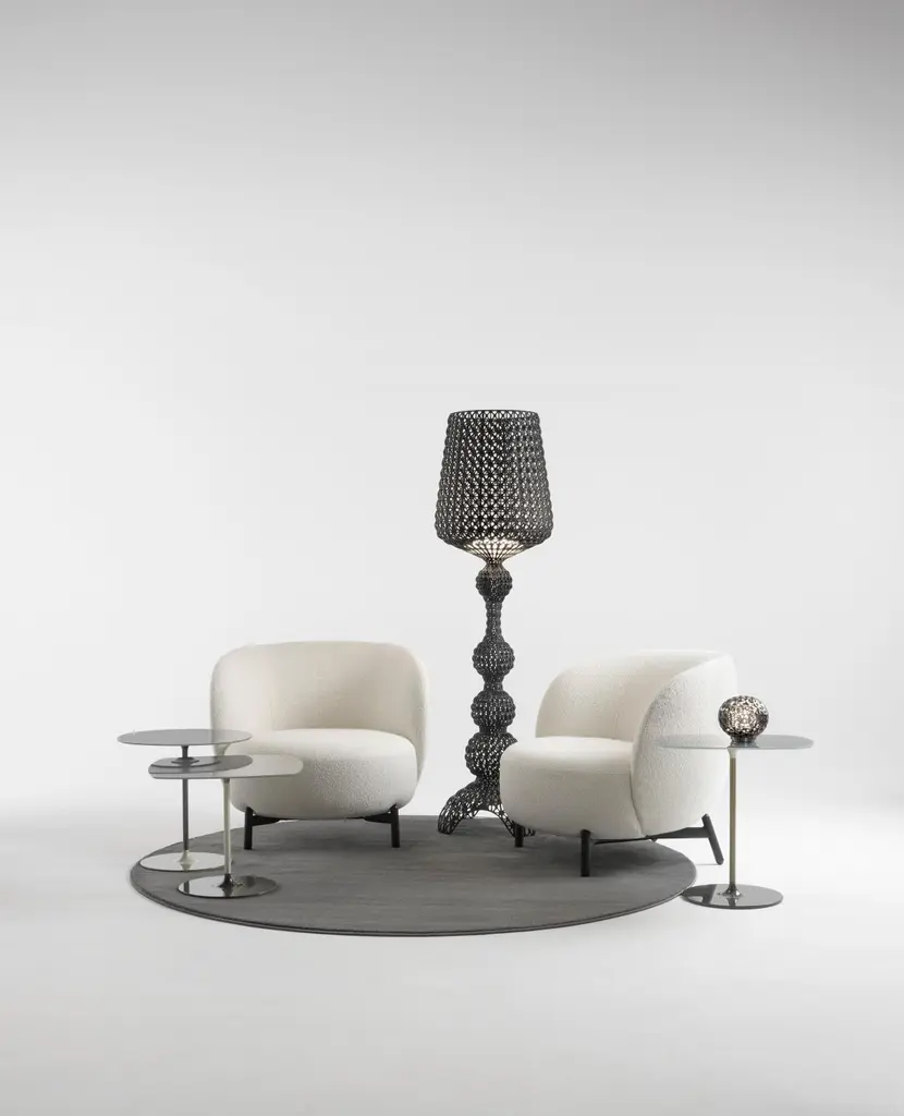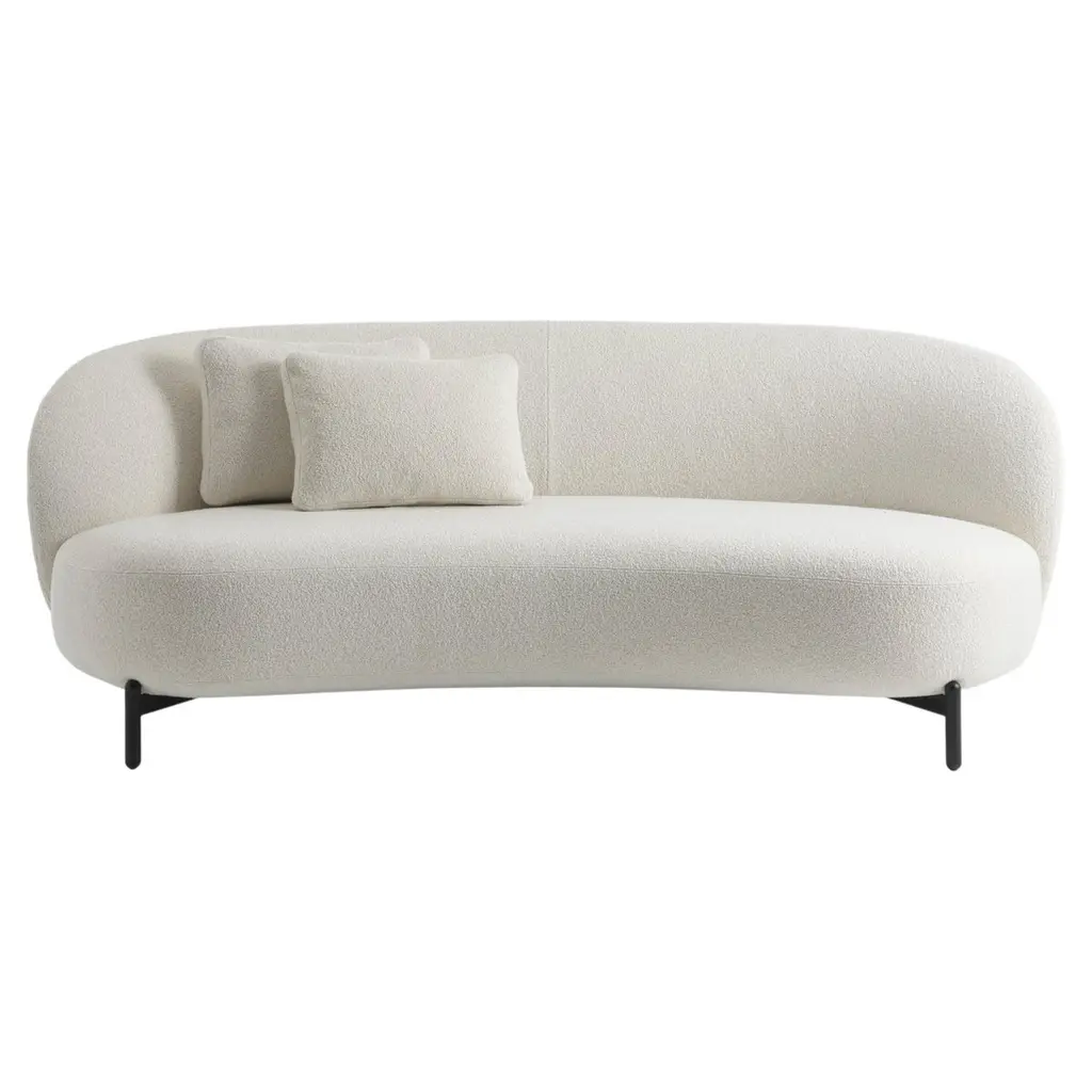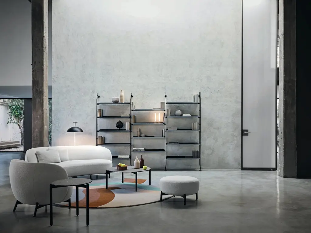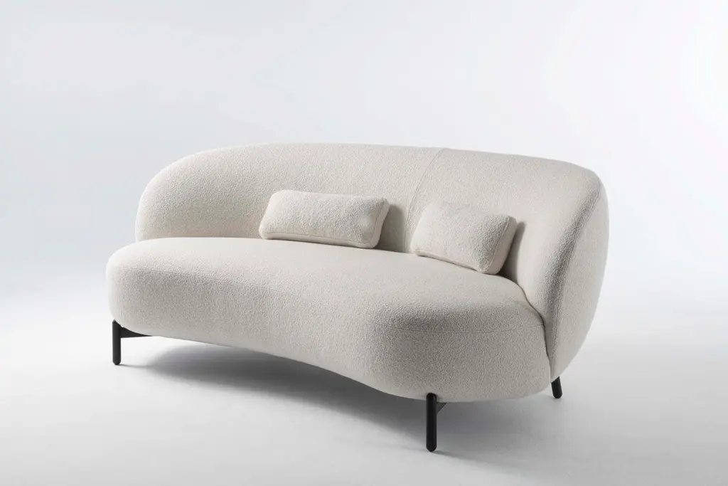 LUNAM is an enchanting living space furniture collection inspired by the dreamy atmosphere of a lunar landscape. An essential, painted metal structure supports generously dimensioned upholstered sections. Sofa, armchair and pouffe come in soft bouclé fabric or mélange (the contract option) in Olive Green, Petroleum, Siena Earth and a choice of greys.