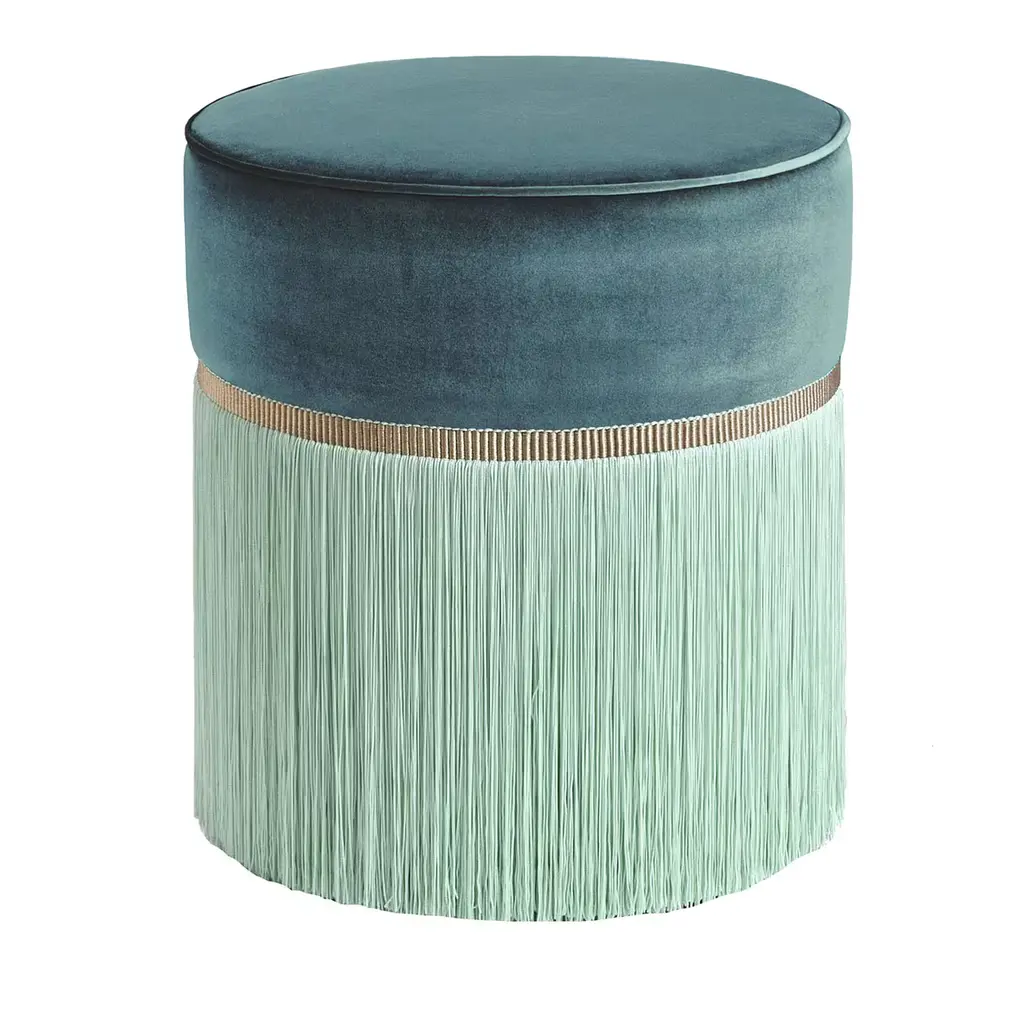 Kir Royal/p Pouf With Green Fringes And Velvet