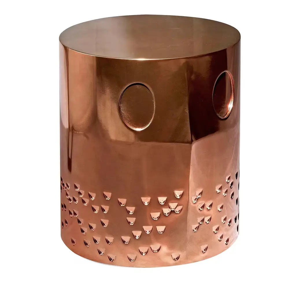 The enchanting design of the Knatt Gold side table adds a glamorous touch to any decor. Whether you choose to use it as a small coffee table, night table or pouf/seat, this stunning accessory crafted in metal, with both a polished and satin finish, is available in various colors, from black to light tones including copper, gold, bronze and silver.