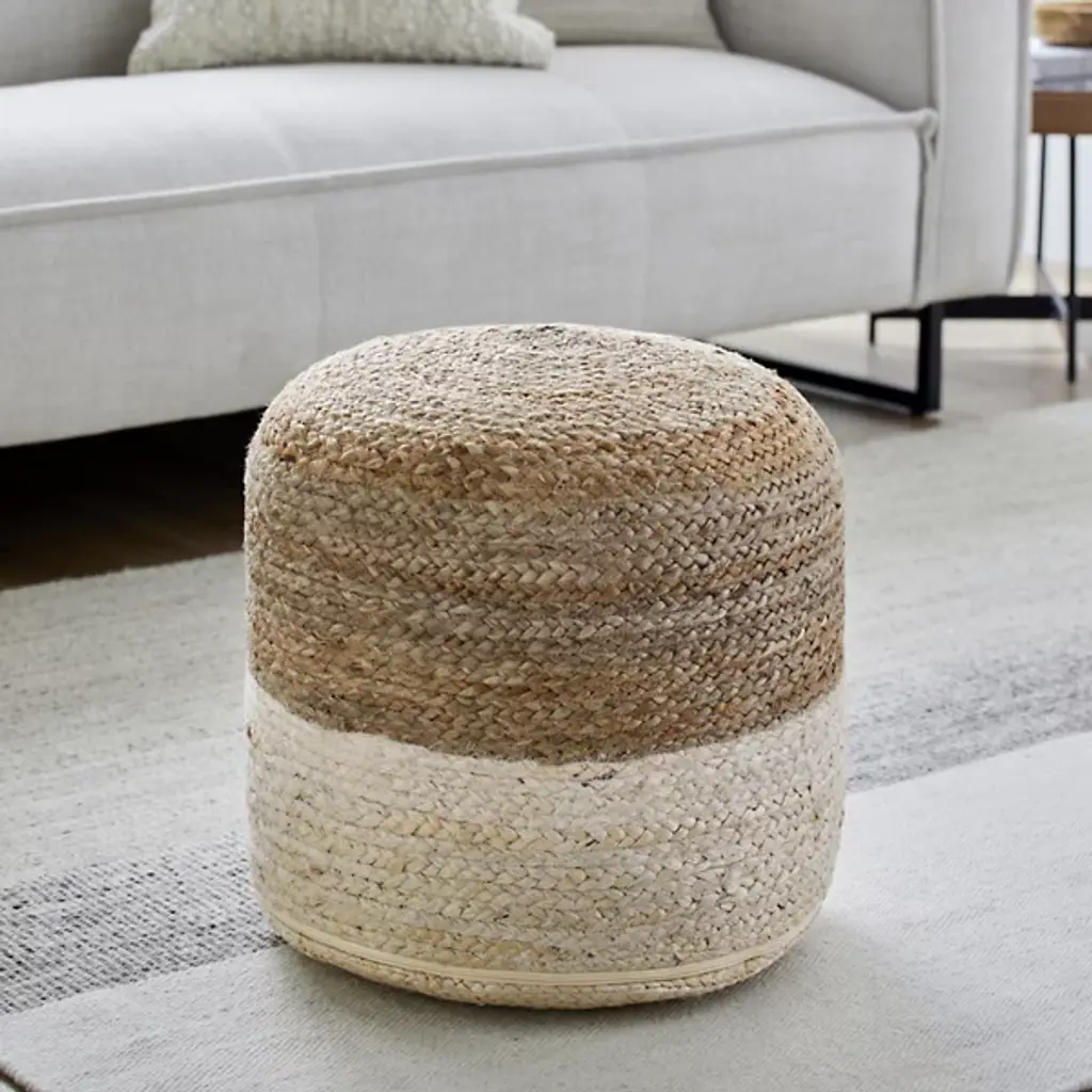 The Kona Pouf from Surya lets natural jute fibers take center stage through intricate braiding patterns. Made in India by skilled artisans, this handcrafted piece incorporates traditional weaving techniques that create delightful tactile surfaces. The polybead filling offers responsive comfort, whether used as seating or a footrest. A removable cover with self-binding edges ensures easy maintenance. This versatile piece brings an organic quality to spaces while providing everyday functionality that adapts to your needs.