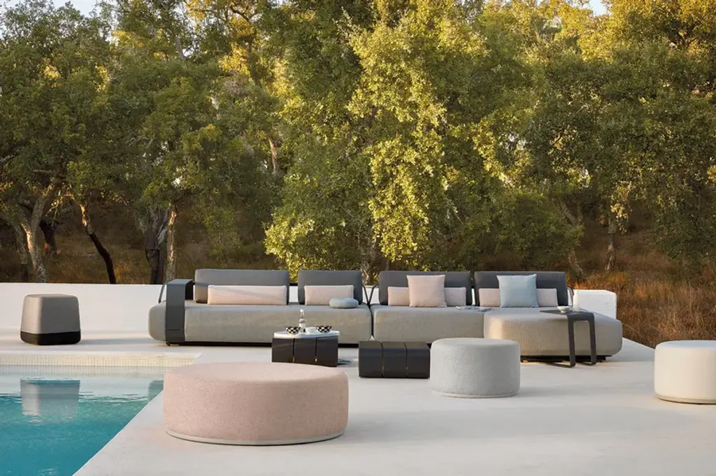 KUMO is a light and playful contemporary seating island with pouf. Japanese for cloud, KUMO invites you to create your personalised outdoor cocoon. It comes in different shapes and sizes. The movable armrests and back supports are easily adjusted to create either a comfortable sofa or stylish lounger, a luxurious lounge chair or a relaxing footrest.