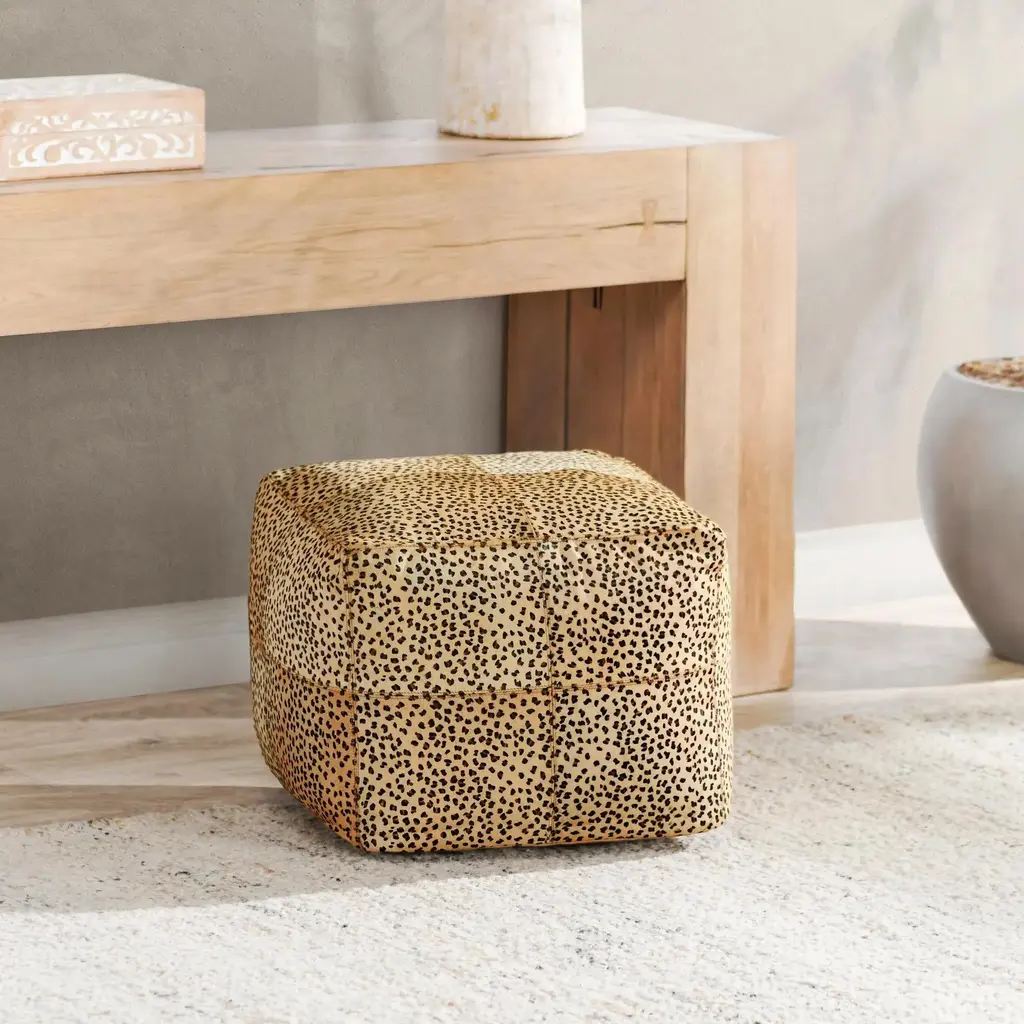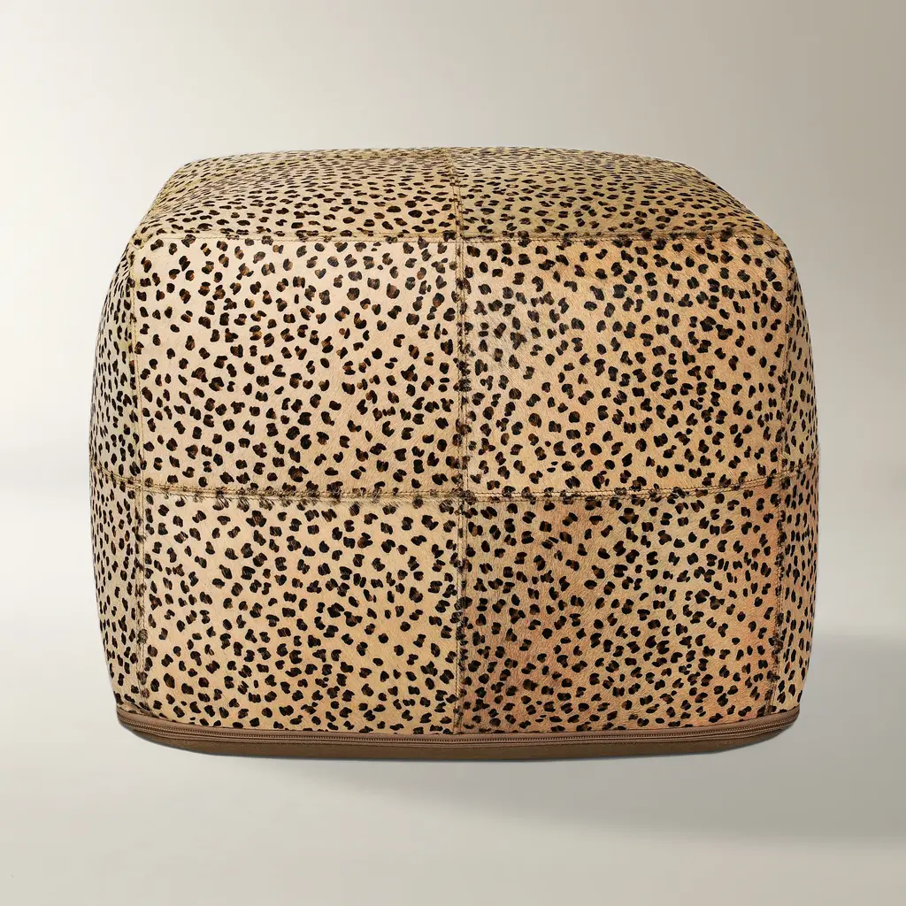 Leopard Hide Camel / Black Pouf