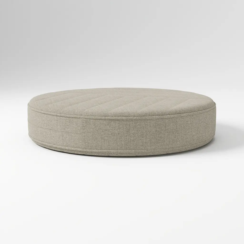 The structure of the Leplì pouf is in birch plywood and poplar with uprights in solid beech and infill in kraftliner. In the version with storage compartment, the side shells are in moulded rigid polyurethane, the metal parts of the opening mechanism and the zips are in nickel-plated steel and zamak, and the lid is in birch plywood. The base is in poplar plywood with a scratch-resistant black lacquered MDF bottom. The seat is padded with polyurethane foam and polyester wadding (the model with storage compartment has polyurethane foam padding for the structure and lid). The Leplì poufs can be upholstered in Pelle Frau® leather or fabric with an ornamental leather band. When the upholstery is in leather the ornamental band is always the same colour as the pouf. In the leather version four folds originate from the central button of the seat to define the profile of the pouf. In the fabric version the folds are replaced by stitching.READ LESS