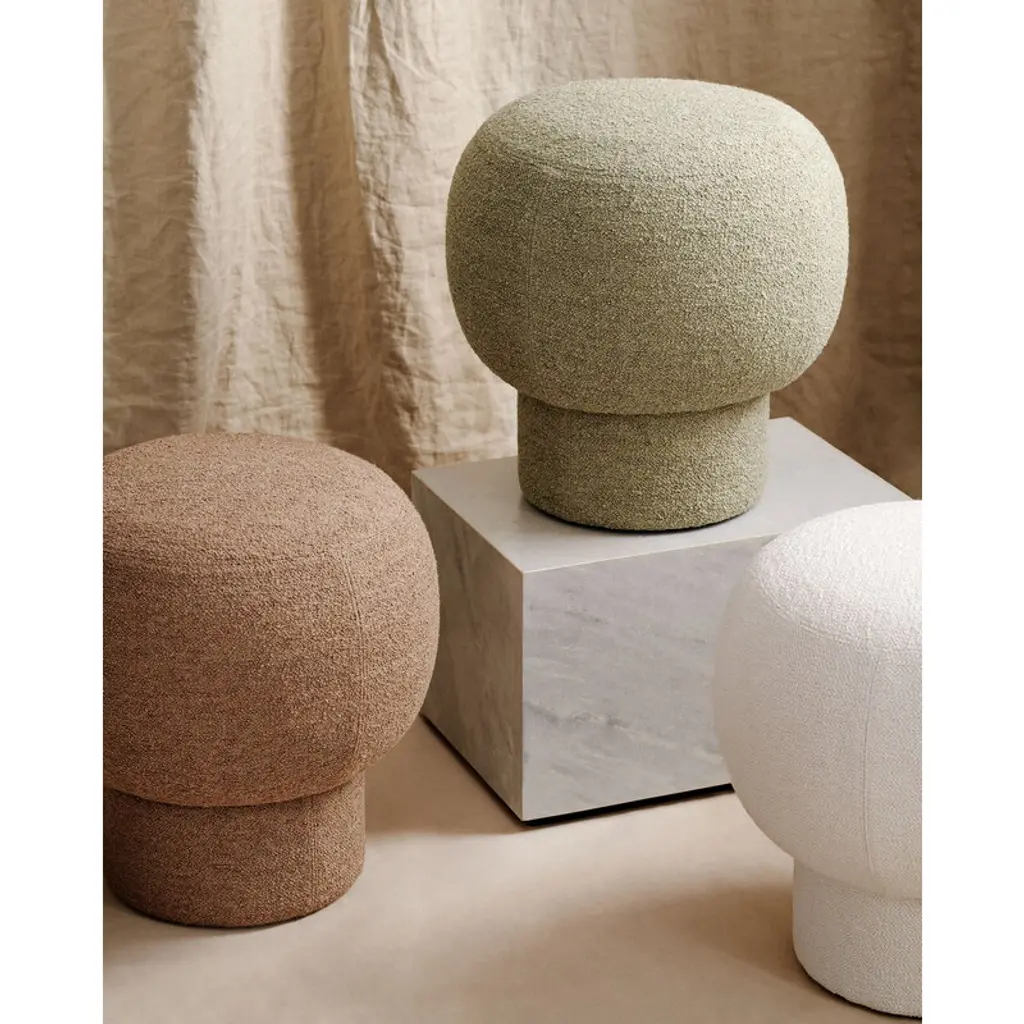 NORR11’s Liège pouf got its name from its characteristic shape imitating a champagne cork. Designed by Kristian Sofus Hansen and Tommy Hyldahl in 2021, the Liège pouf serves equally well as a small extra seat or a footstool next to a sofa or armchair. The pouf is constructed from plywood and foam and upholstered in a vividly textured boucle fabric. The Liège pouf looks delightful in any interior, either individually or in groups.