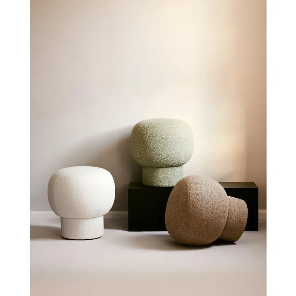 NORR11’s Liège pouf got its name from its characteristic shape imitating a champagne cork. Designed by Kristian Sofus Hansen and Tommy Hyldahl in 2021, the Liège pouf serves equally well as a small extra seat or a footstool next to a sofa or armchair. The pouf is constructed from plywood and foam and upholstered in a vividly textured boucle fabric. The Liège pouf looks delightful in any interior, either individually or in groups.