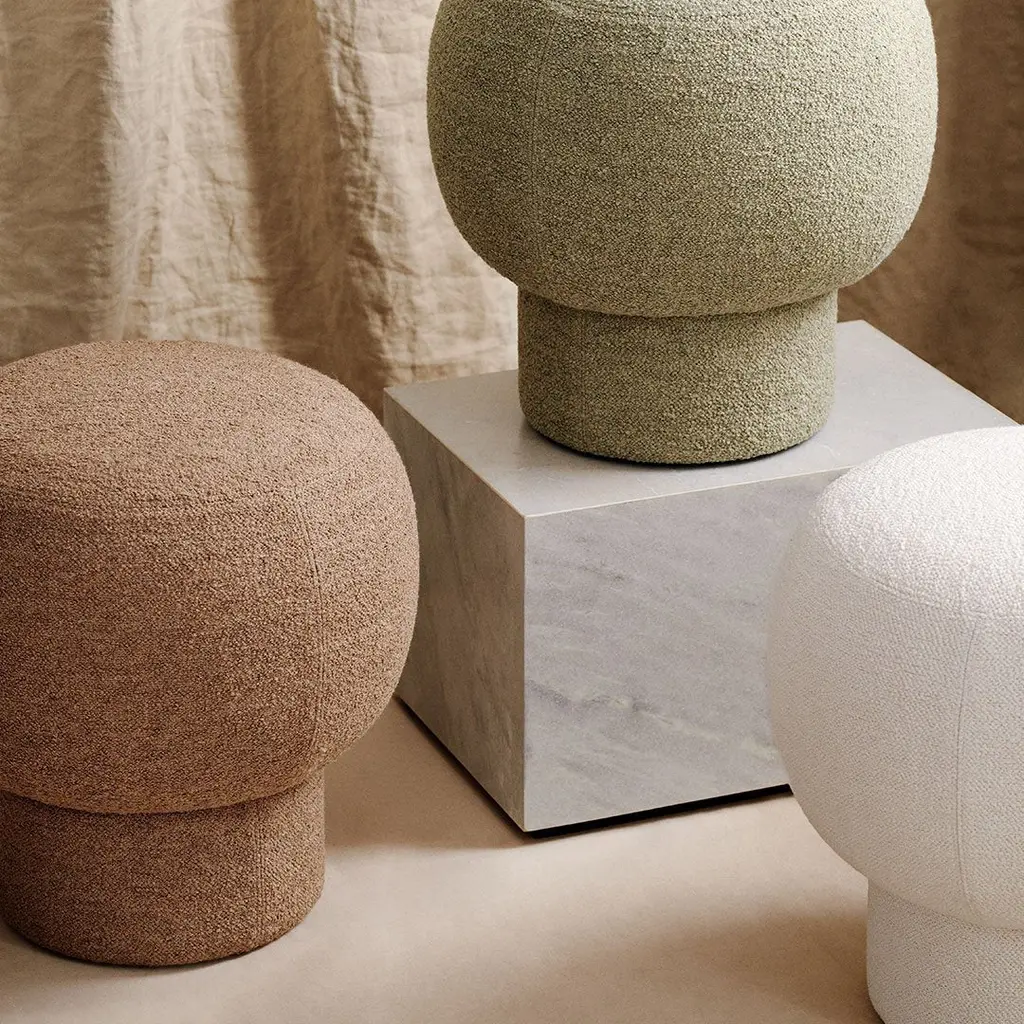 Light and soft to the touch, the Liège Pouf is shaped like the characteristic Champagne cork. Made from plywood and foam finished with refined upholstery work, the Liège Pouf adds a quietly neutral or boldly colourful focus to any space. Product facts: - A soft, friendly form that functions as a seat or ottoman - Made of plywood and foam