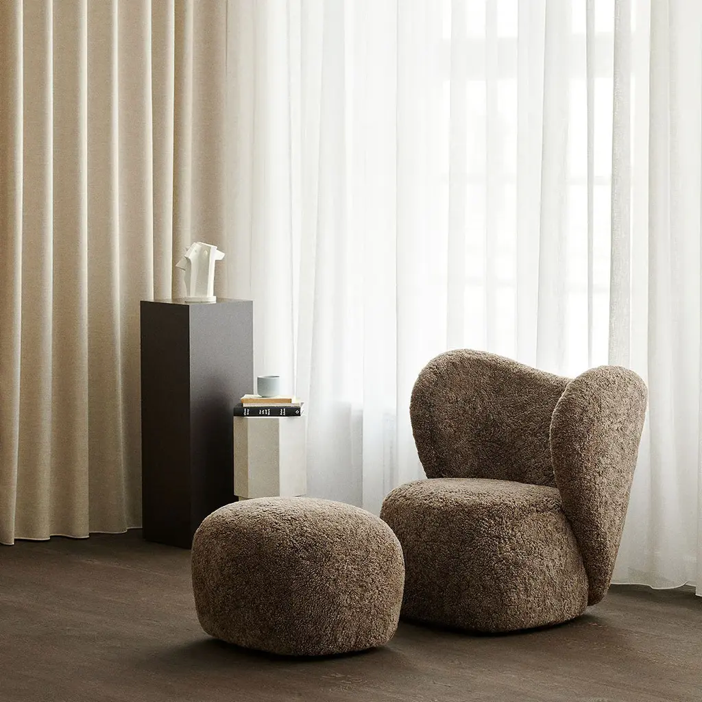 The Little Big Pouf serves as an ideal companion to the Little Big Chair and Big Big Chair, providing a comfortable footrest or an extra seating option when needed. Its rounded, rectangular body rests low to the ground, supported by a hidden base creating that cozy, seamless look. The pouf features a plywood frame and foam core, ensuring both durability and comfort.