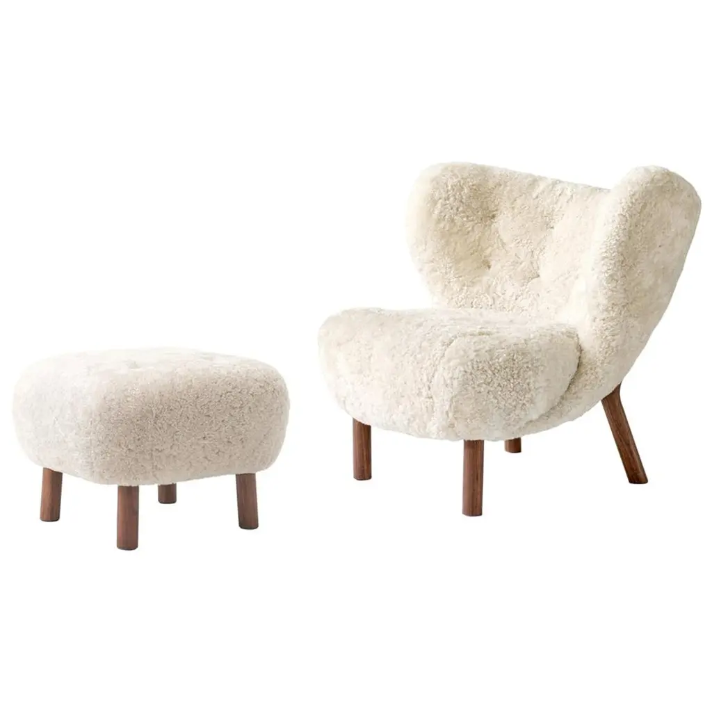 Little Petra & Pouf In Sahara Sheepskin & Walnut By Viggo Boesen For & Tradition
