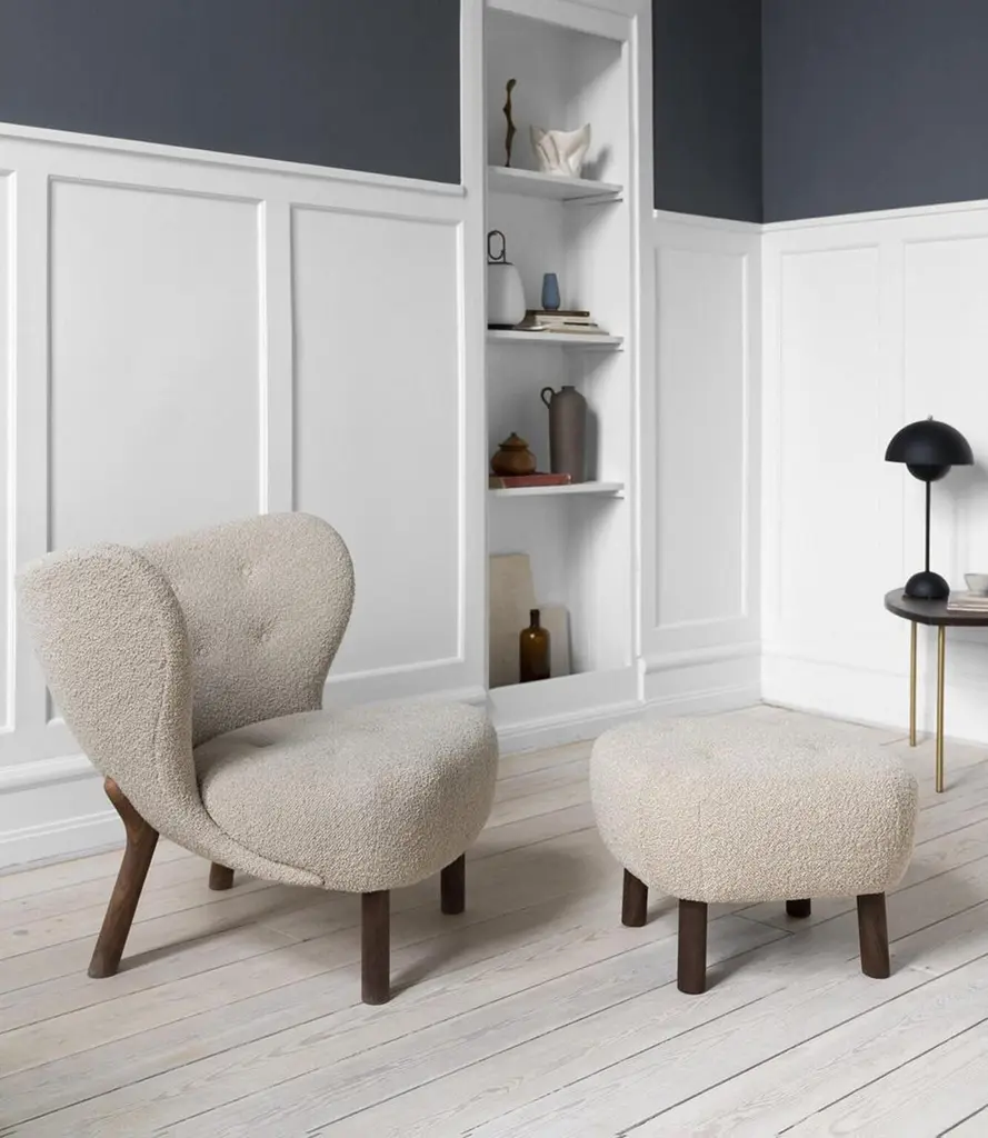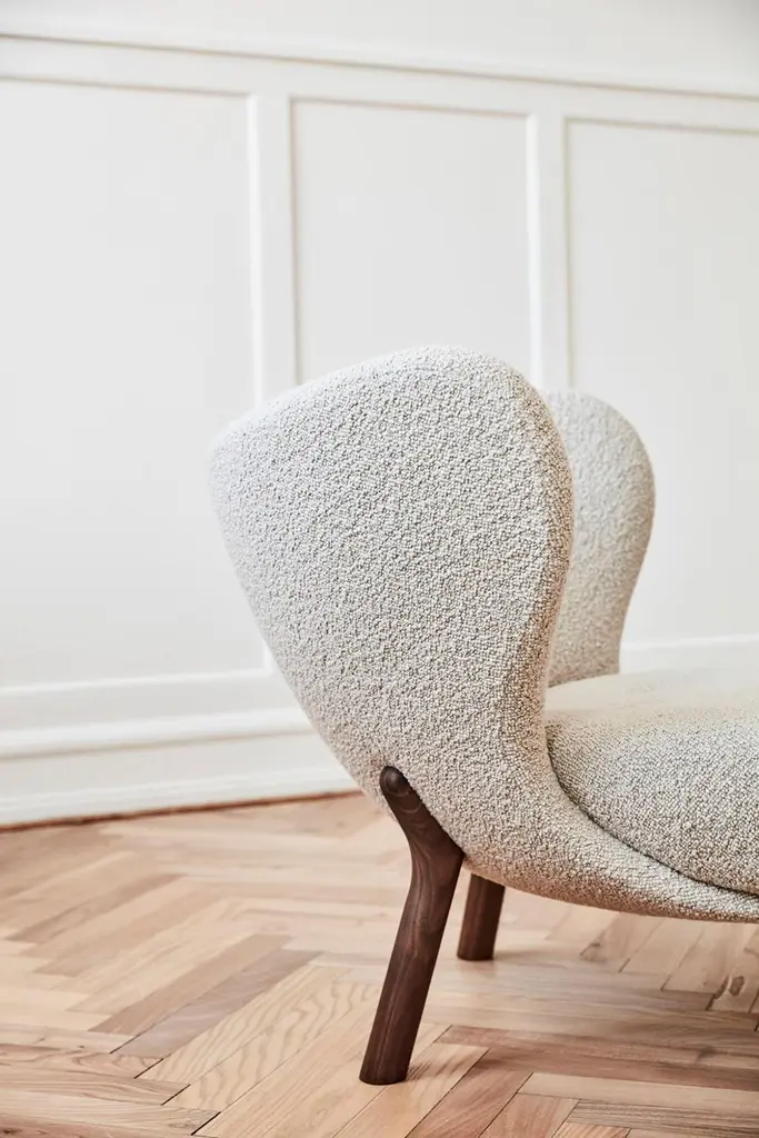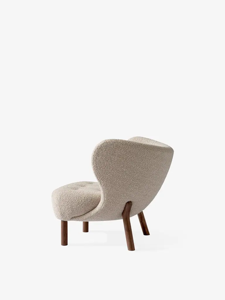 Initially introduced back in 1938, Little Petra won instant praise at the Copenhagen Cabinetmakers Guild Exhibition, subsequently winning awards at exhibits in New York and Berlin. It’s one of just a few designs by architect Viggo Boesen, who became associated with Denmark’s signature design aesthetic in the 1930s called funkis style. Little Petra is surprisingly petite, able to fit into all kinds of spaces, interiors and environments. Low to the ground, open and embracing, it embodies the essence of a lounge chair, allowing for all kinds of seating positions in any cosy setting imaginable.DesignerViggo BoesenA pioneer of his time, Viggo Boesen (1907 – 1985) made grand gestures in the world of Danish design and architecture, bringing a new perspective to the forefront of the collective imagination throughout the 1930s. His work reflected a new Scandinavian ‘Funkis’ style, a Nordic take on Art Deco, which was popular during the time and brought with it an array of surprising forms and silhouettes.Soft and nurturing, the Pouf is an ideal companion. With rounded legs in Oiled Walnut, and upholstery in Karakorum 003 , it lends an organic warmth to any interior. Pair with the Little Petra for an elegant lounge seating arrangement.Material : Upholstery Loop Oyster/09 and oiled walnutDimensions:Little Petra lounge chair : H: 75cm/29.5in, D: 83cm/32.7in, L: 81cm/31.9in, Seat h: 40cm /15.7in, Seating d: 55cm/21.6inPouf: H: 37cm / 14.6in, W: 53cm / 20.9in, D: 53cm / 20.9in.