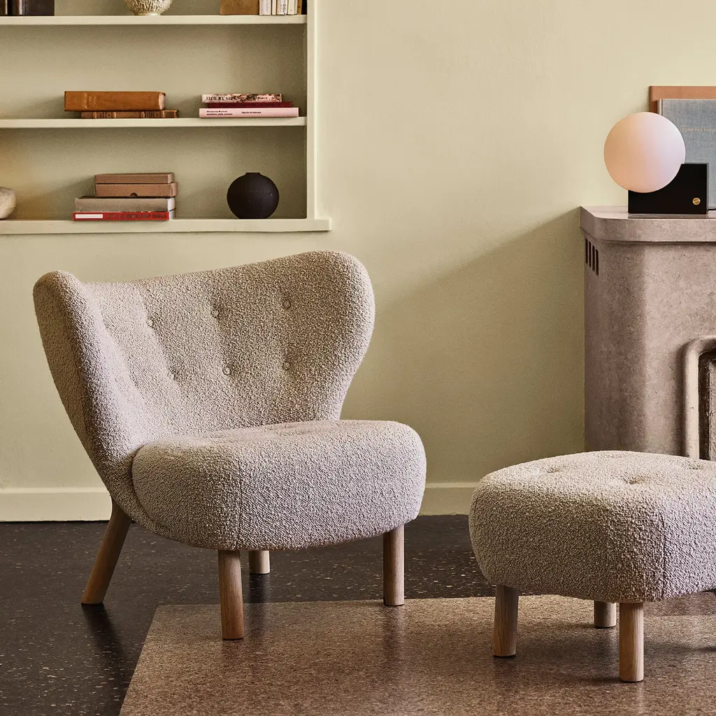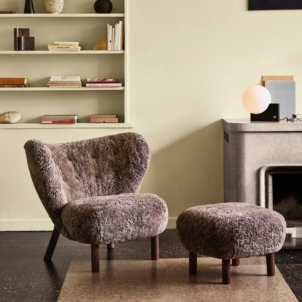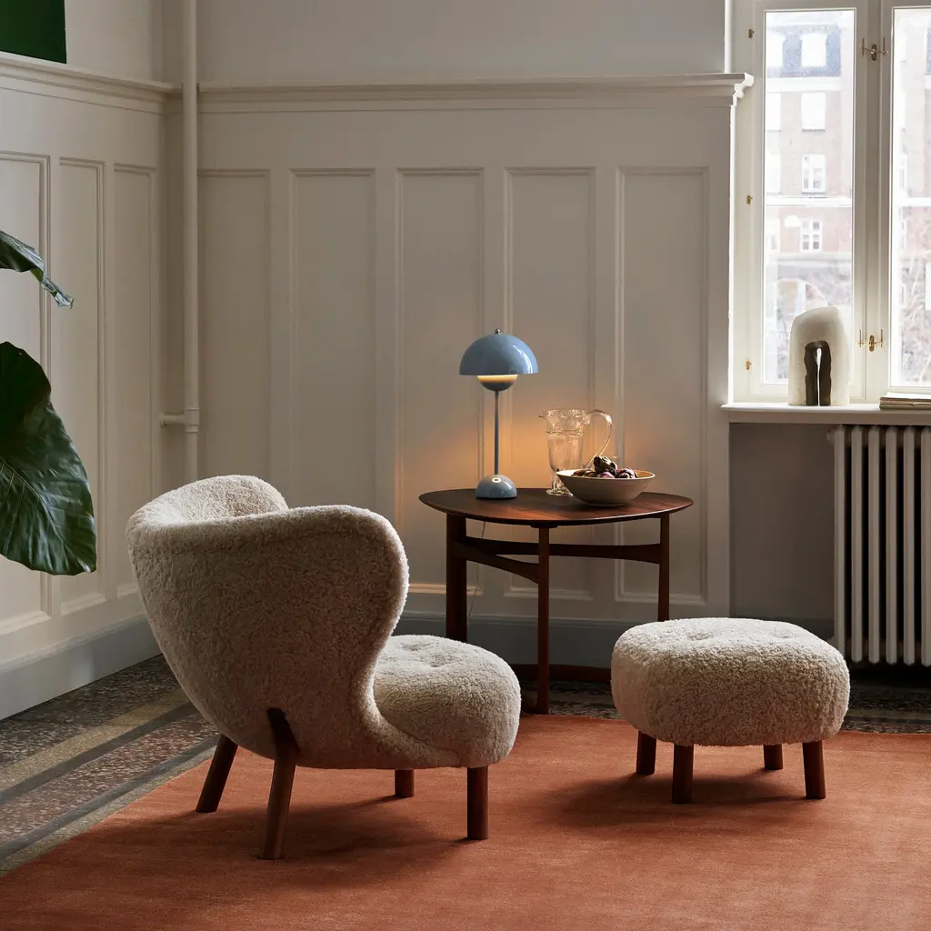 A companion piece to architect Viggo Boesen’s lounge chair Little Petra, the pouf sports the same rounded legs in either oak or walnut as well as upholstery in a choice of fabric, leather and the signature sheepskin. Paired together, &Tradition's seating and footrest offer a completely relaxing experience. And, in a pinch, the pouf makes for handy extra seating while lending an organic warmth to any interior.