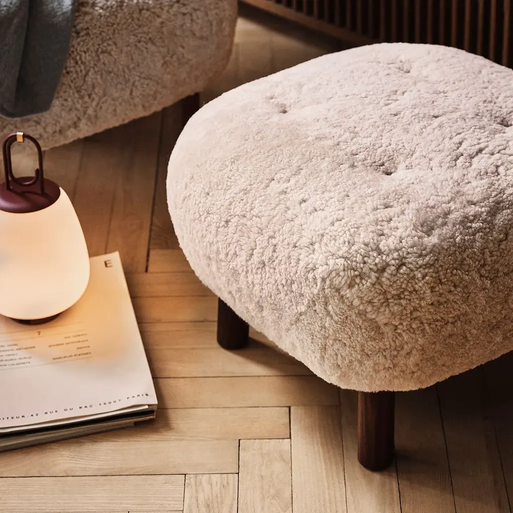 Soft and nurturing, the Pouf is an ideal companion. With rounded legs in either oak walnut, and upholstery in a wide variety of fabrics that include sheepskin, it lends an organic warmth to any interior. Pair with the Little Petra for an elegant lounge seating arrangement.