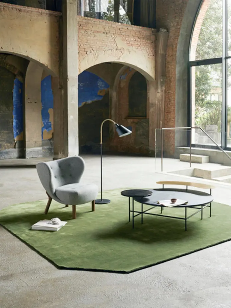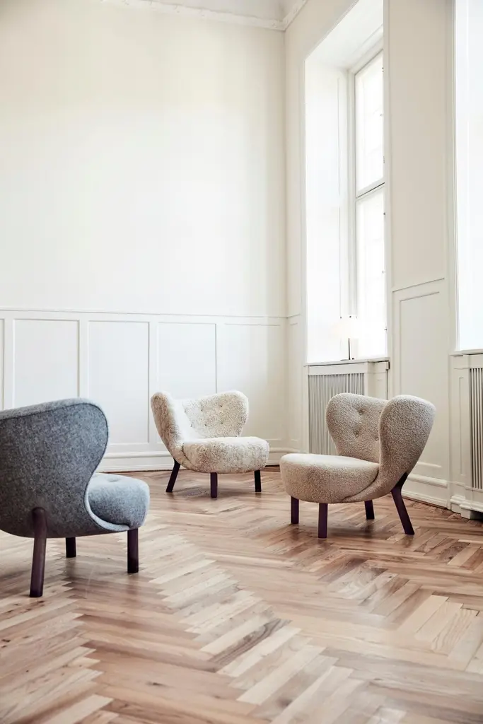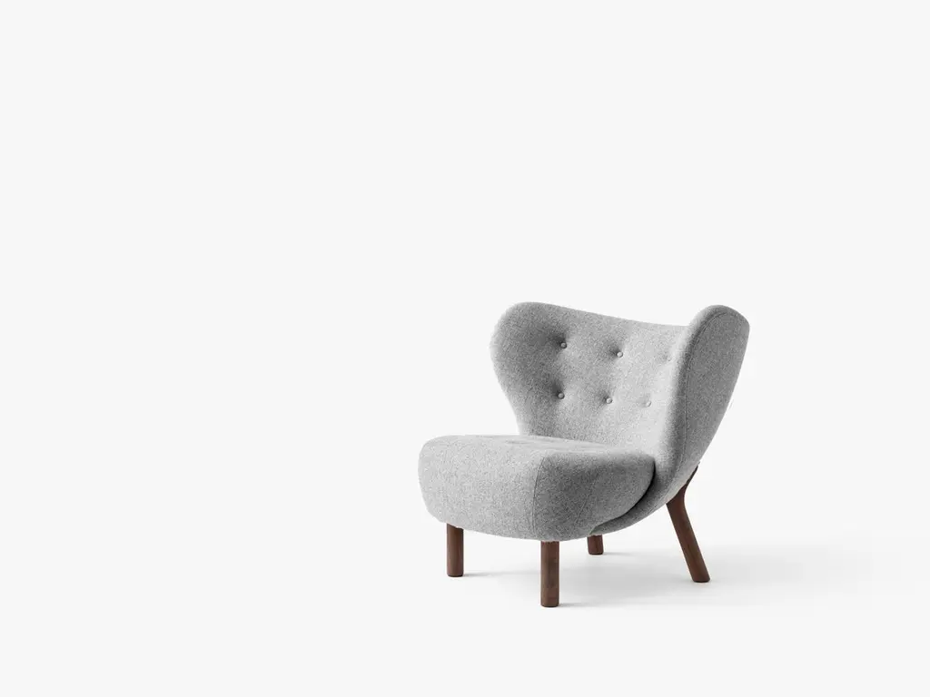 Initially introduced back in 1938, Little Petra won instant praise at the Copenhagen Cabinetmakers Guild Exhibition, subsequently winning awards at exhibits in New York and Berlin. It’s one of just a few designs by architect Viggo Boesen, who became associated with Denmark’s signature design aesthetic in the 1930s called funkis style. Little Petra is surprisingly petite, able to fit into all kinds of spaces, interiors and environments. Low to the ground, open and embracing, it embodies the essence of a lounge chair, allowing for all kinds of seating positions in any cosy setting imaginable.DesignerViggo BoesenA pioneer of his time, Viggo Boesen (1907 – 1985) made grand gestures in the world of Danish design and architecture, bringing a new perspective to the forefront of the collective imagination throughout the 1930s. His work reflected a new Scandinavian ‘Funkis’ style, a Nordic take on Art Deco, which was popular during the time and brought with it an array of surprising forms and silhouettes.For the Pouf, it's Soft and nurturing, an ideal companion. With rounded legs in Oiled Walnut it lends an organic warmth to any interior. Pair with the Little Petra for an elegant lounge seating arrangement.Dimensions:Little Petra lounge chair : H: 75cm/29.5in, D: 83cm/32.7in, L: 81cm/31.9in , Seat h: 40cm /15.7in, Seating d: 55cm/21.6inPouf : H: 37cm / 14.6in, W: 53cm / 20.9in, D: 53cm / 20.9in.