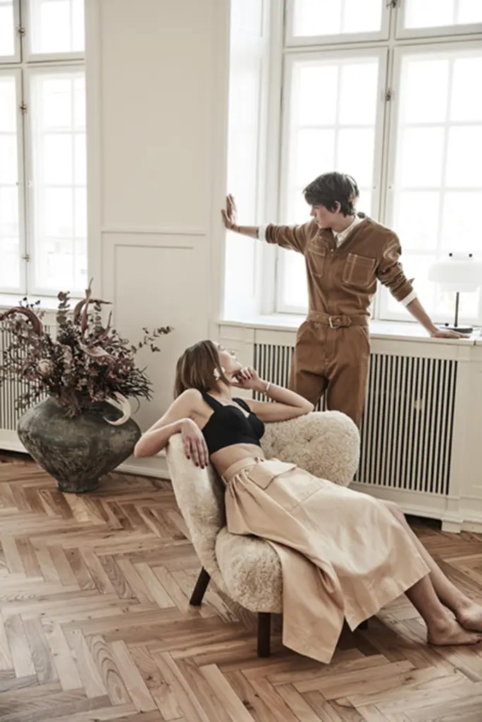 Little Petra Vb1 & Pouf In Sheepskin M & Walnut By Viggo Boesen For &Tradition