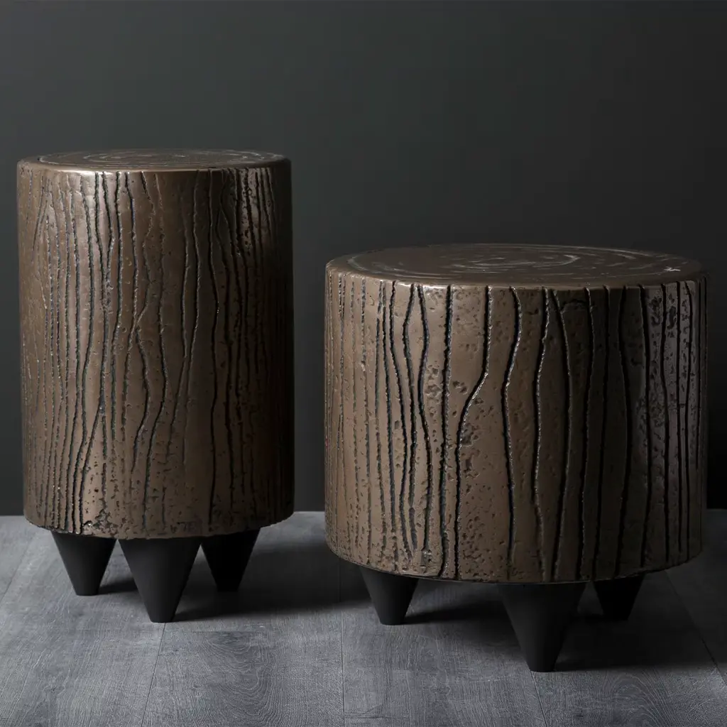 Reminiscent of a tree trunk, this stupendous low side table or pouf is a distinctive and sophisticated display of traditional craftsmanship. An exquisite complement to a contemporary interior, especially if combined with others from the same series, it is handmade of resin and liquid bronze. Available in other colors and sizes on the Artemest catalog, please consult the Concierge for further details.