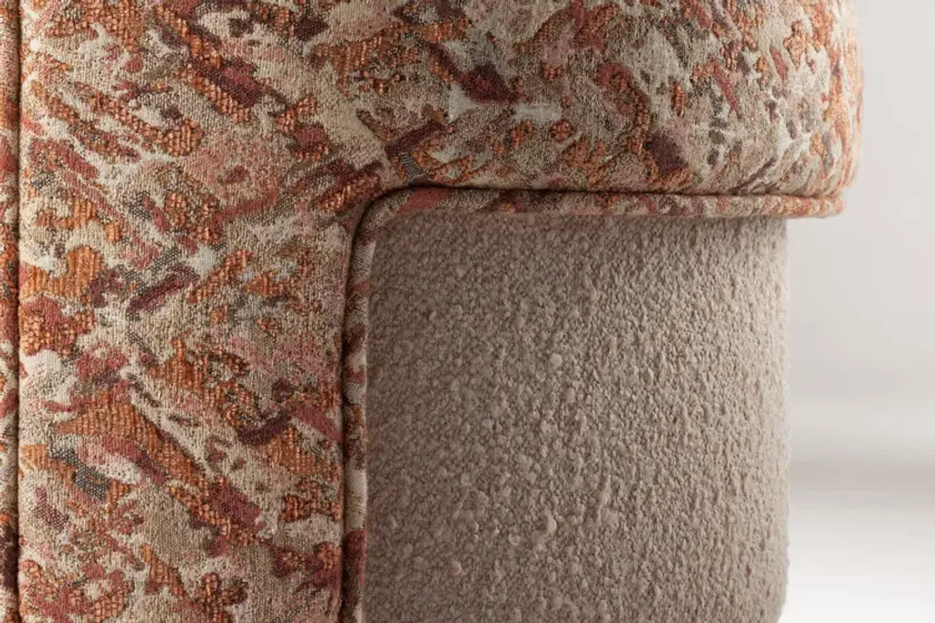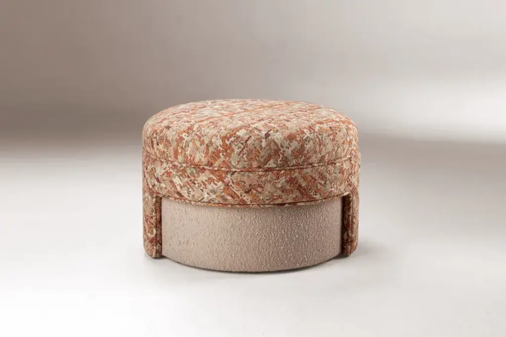 L’Unité pouf is proportional and sculptural, perfectly made to the human scale. It gathers strong upholstered shapes lightly supported on elegant stands. A piece that excites the eye and imagination, inspired by modernist architecture’s style and philosophy.
