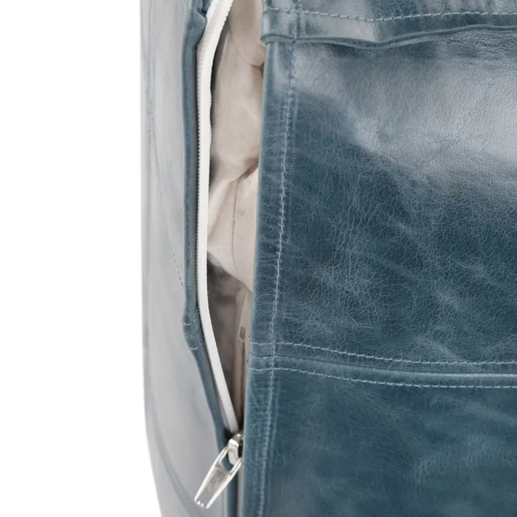 Handcrafted with Teal Genuine Buffalo PolyesterSturdy and structured using dense polystyrene bead filling that helps keep its shape and is super supportiveMulti-functional can be used in living room, family room, bedroom as a foot stool, accent furniture or provide additional sittingVersatile square shape features top stitching detail on top, bottom and sides and concealed zipper