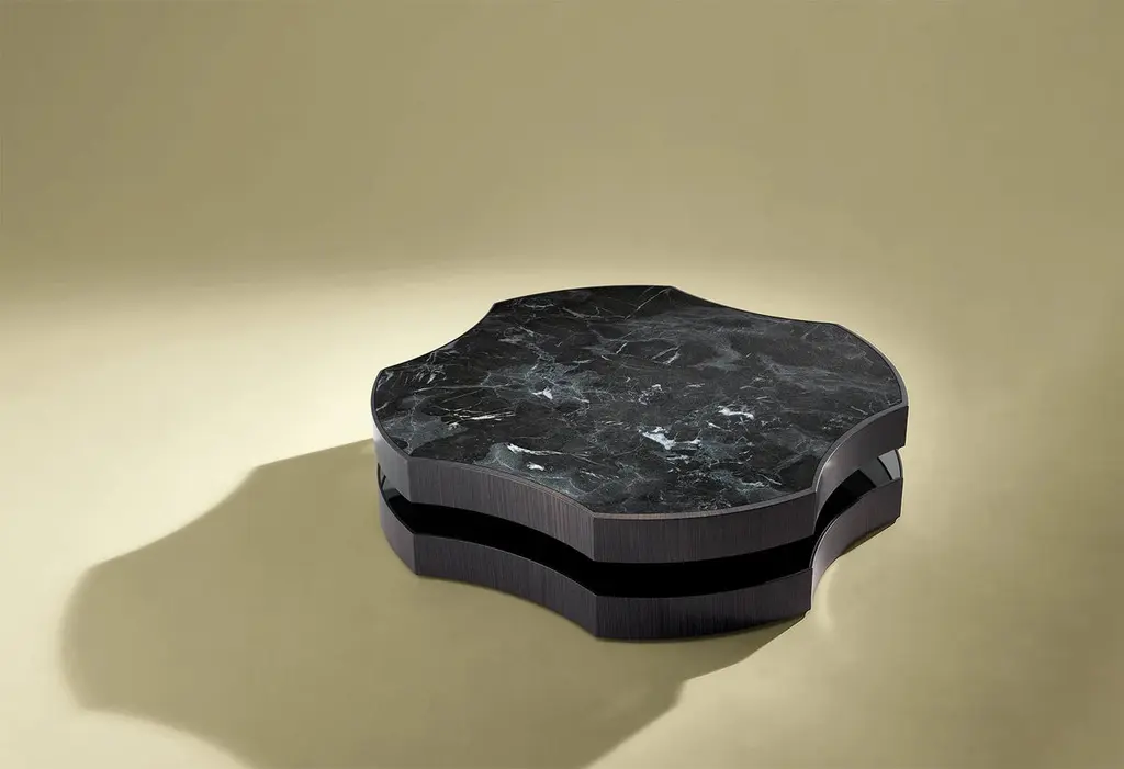 Table in grey wood and marble royal black top inlay.Bespoke / customizableIdentical shapes with different sizes and finishings.All RAL colors available. (Mate / half gloss / gloss).