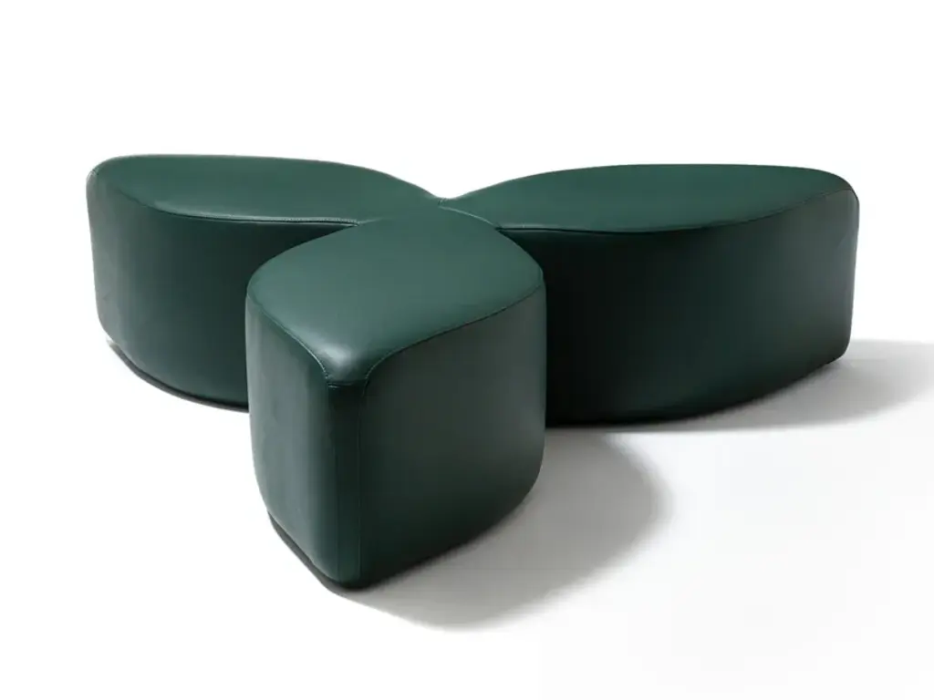 Leather pouf.