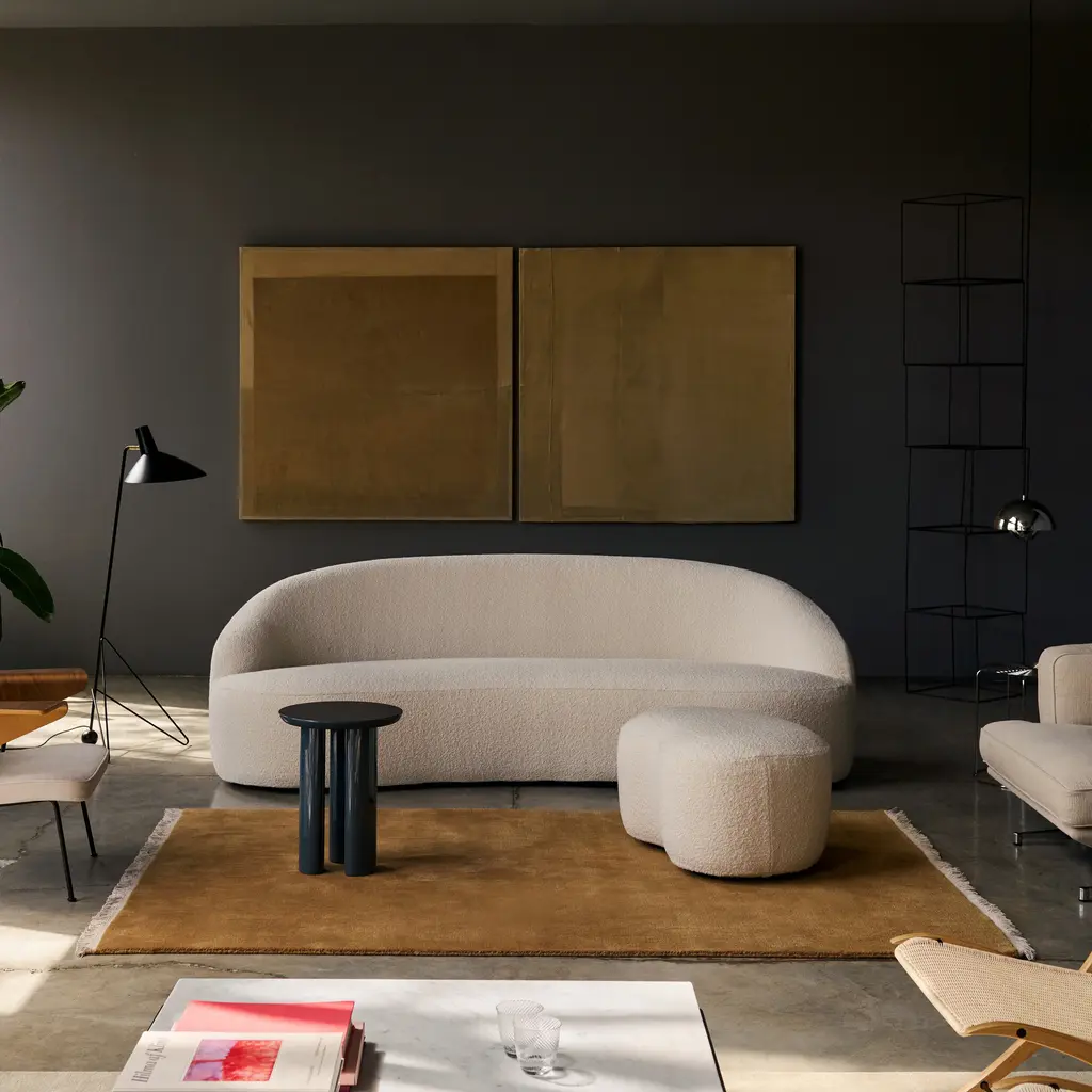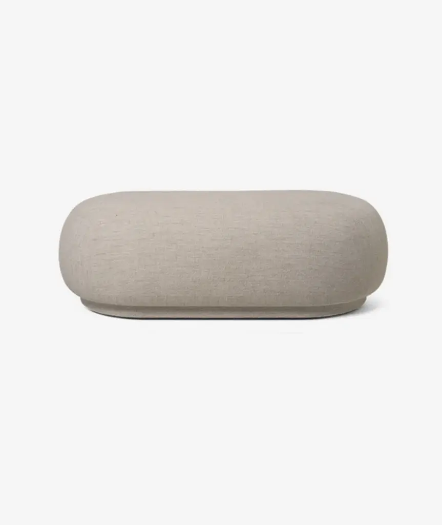 The LC5 Pouf is a compact, sculptural piece that complements the rest of the Margas series with its smooth, organic shape, reflecting the curved lines of the collection's sofas. Clad in allover upholstery from custom selections or the designer's select stock fabrics. Exceptional construction extends to the solid beech and plywood frame covered in HR foam and polyester wadding for a welcoming addition to both commercial spaces and private residences.