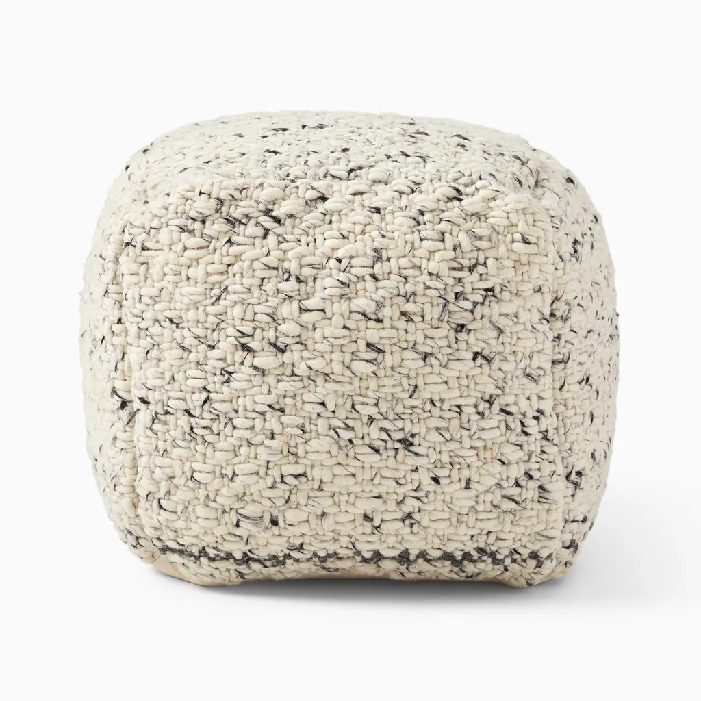 Made from luxurious, naturally resilient wool. Chunky, high-texture feel with marled color variation. Works as extra seating or even a makeshift table. Handwoven by skillful artisans in India.