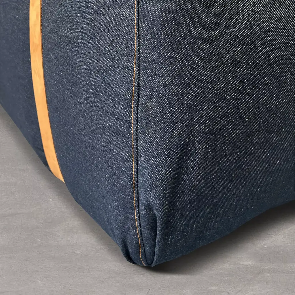 Inspired by vintage transport crates, the Docker pouf in dark blue denim combines eco-conscious materials with contemporary design. The piece features large, soft cushions wrapped in recycled “bio-cotton” fabric, paired with rugged leather straps. This version will be showcased as a permanent design piece at the Museo d’Arte Contemporanea di Villa Croce in Genoa in 2025. Available in multiple sizes and colors in the Artemest catalog, it offers both style and sustainability for modern interiors.