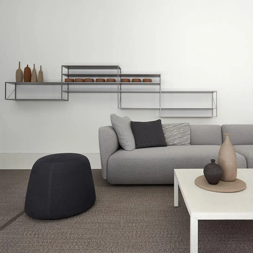 Fuji is the small casual seating collection signed by Francesco Rota whose large, generous and sweet volumes and the trapezoidal silhouette evoke the conical shape of the Japanese volcano.A wide range of fabrics and colours easily merge these seats into every setting for casual and/or accessory seating.Dimensions and types- Pouf S, small ø60cm and seat height 45cm;- Pouf M, medium ø80cm and seat height 40cm;- Pouf L, large ø100cm and seat height 37cm.FRAMEPolystyrene (PS) bearing frame, and multilayer base with concealed feet.PADDINGVariable-density foam polyurethane padding with polyester wadding.COVERThe fabric or leather covering every part of the pouf is manufactured to enhance its softness. In addition, the covers are completely removable.Bicolor version also available.