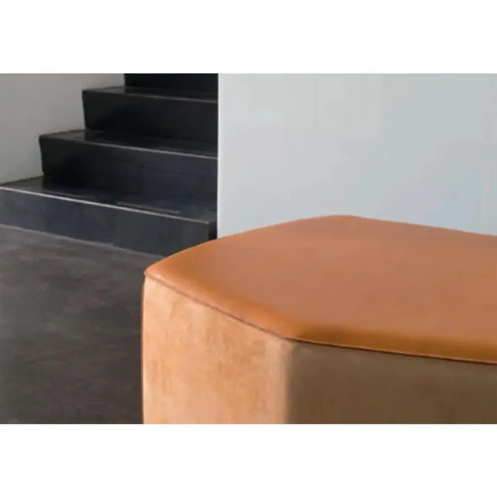 Medium Pouf In Vegetable Leather With Suede And Poplar Plywood By Oscar Maschera