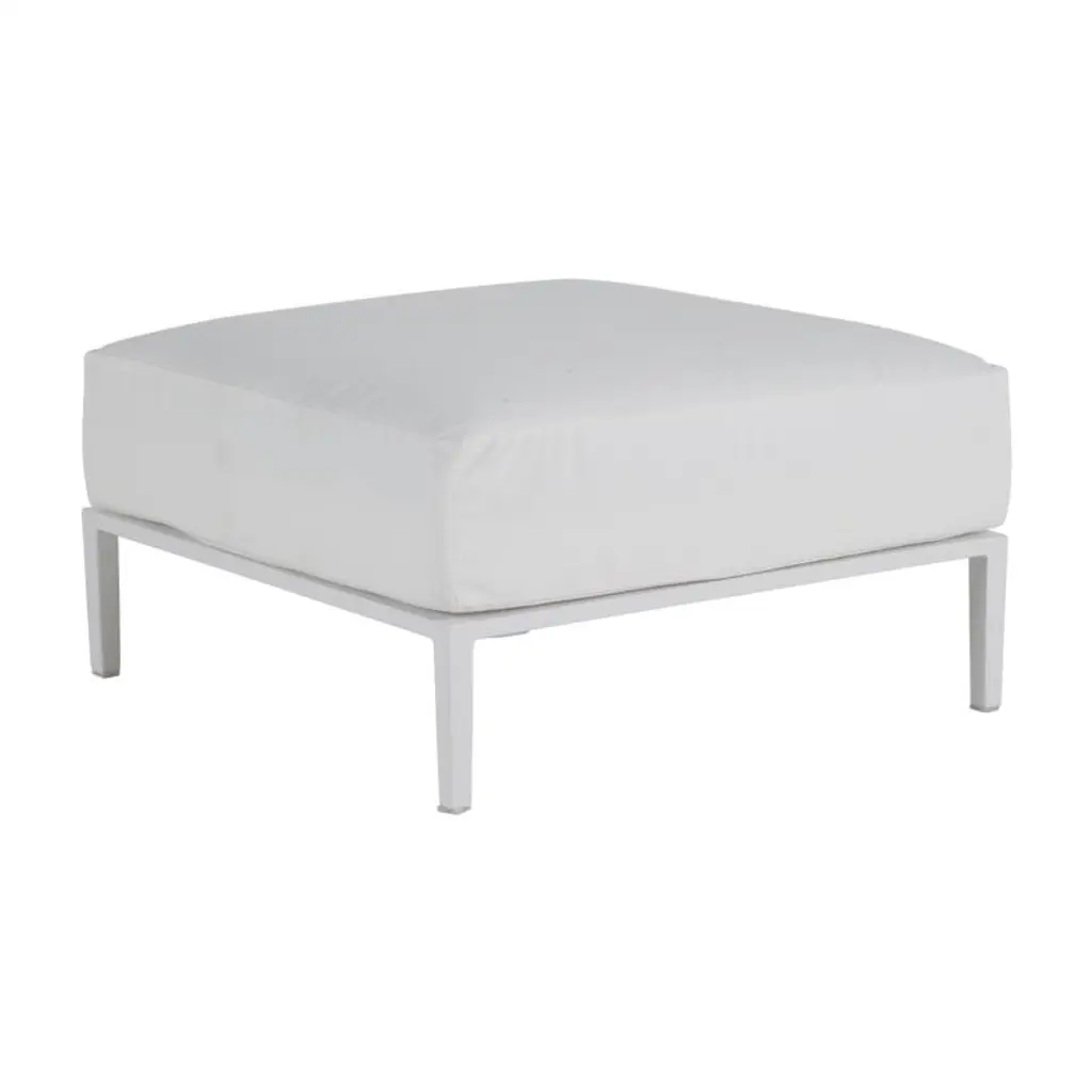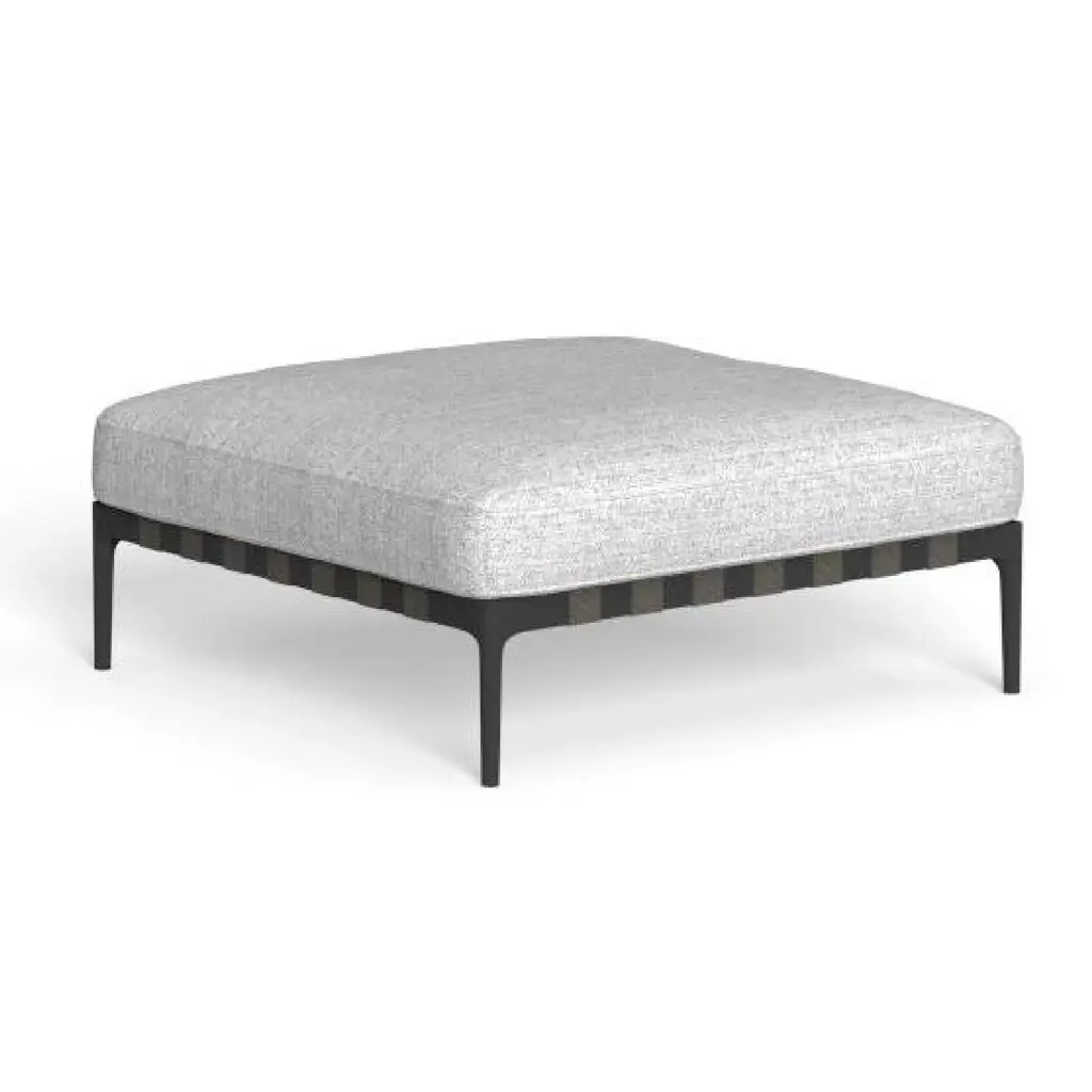 A clever balance between solids and voids marks the Metropolitan Collection, which englobes this elegant square pouf of exquisite minimalism. The epoxy powder-varnished aluminum frame offers simultaneous sustain and lightness to the piece, which comes with a richly cushioned seat for impeccable comfort even in case of prolonged use. Including fabric seat cushion cat A.