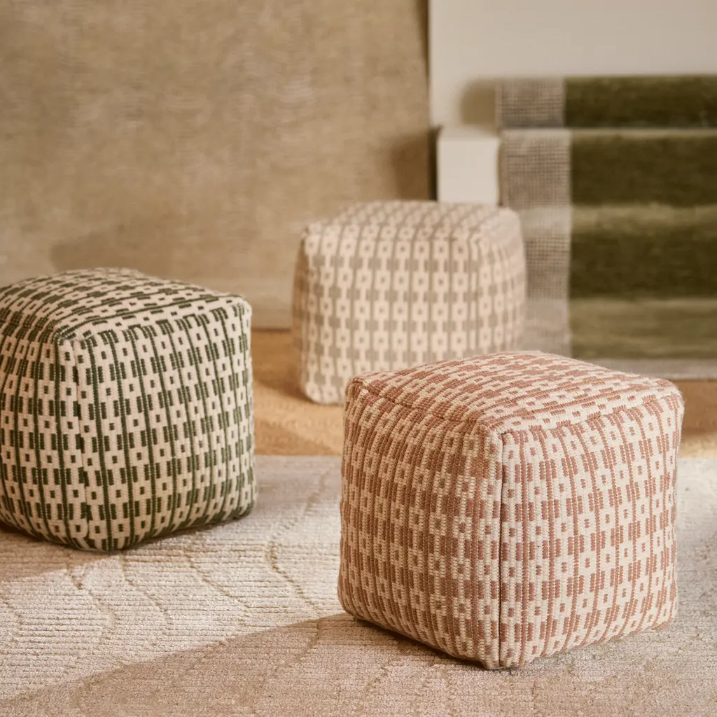 Don't be a square — be a cube. The Mia pouf is six equal sides of handwoven goodness. A repeating dot-and-dash pattern is playful but subtle, making this a great accent for a living space that loves fun but doesn't want to compete for attention. Stuffed with polyurethane beads, the Mia is a great alternative to an ottoman, or simply a charming little tuffet to perch on.