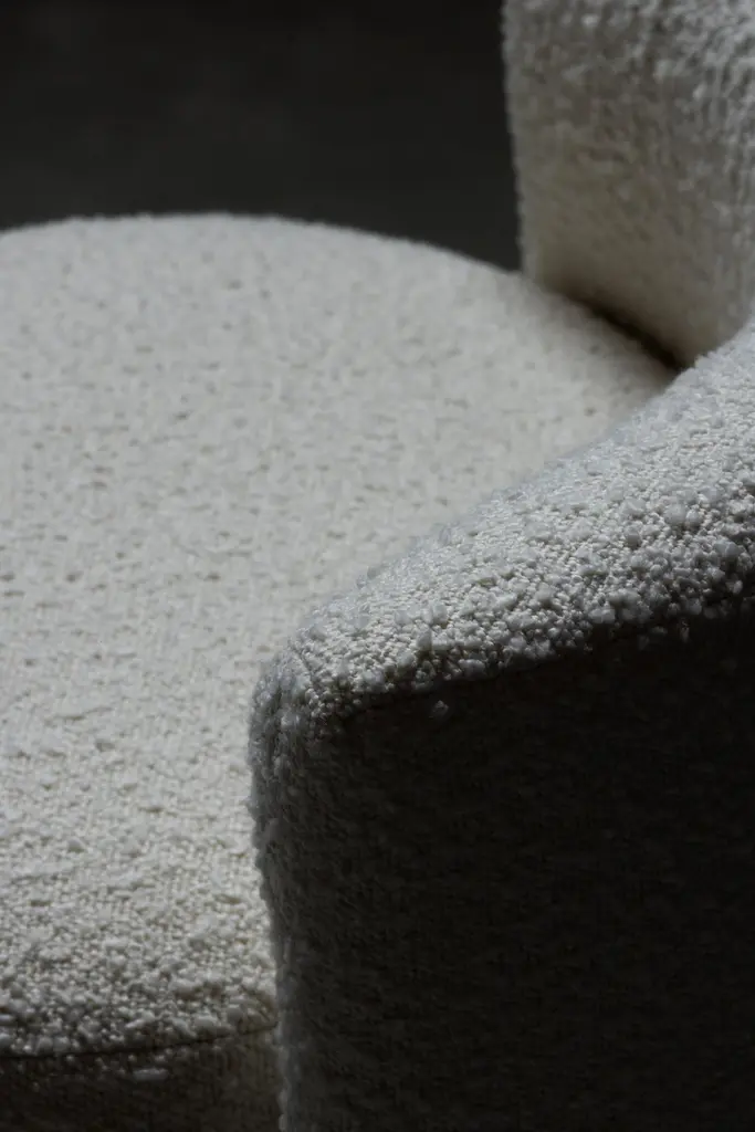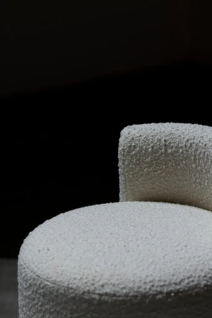 Mid-Century Modern Grand Pouf White Cotton Bouclé Handmade By Greenapple