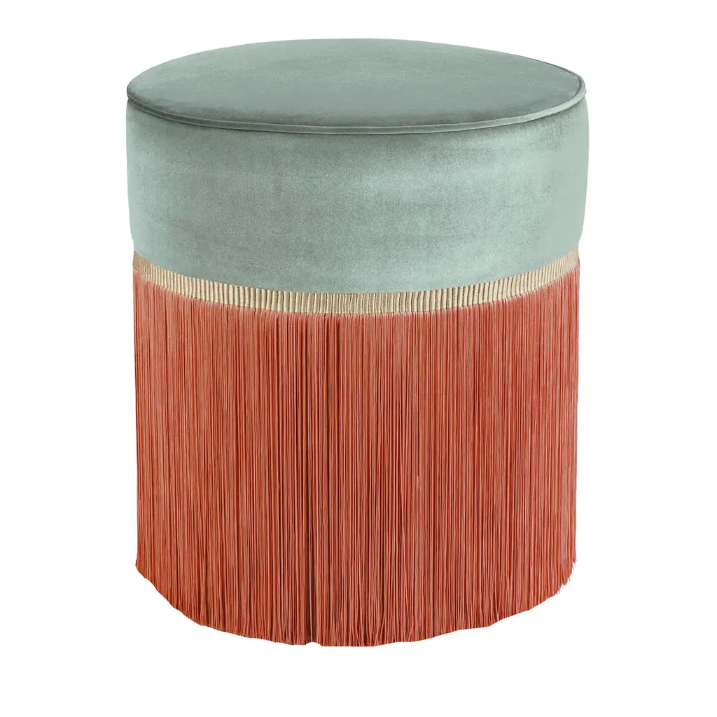 Add a fun burst of color to a dynamic lounge area with this pouf from the Couture Geometric Collection. Standing on a painted beechwood base, the pouf is topped with velvet upholstery and accented with viscose fringe for a soft and cozy effect. The pouf is from a collection with endless combinations of shapes, sizes and colors.