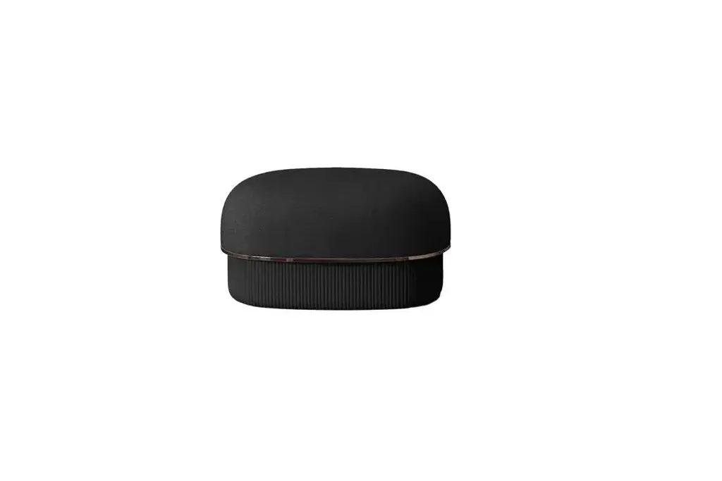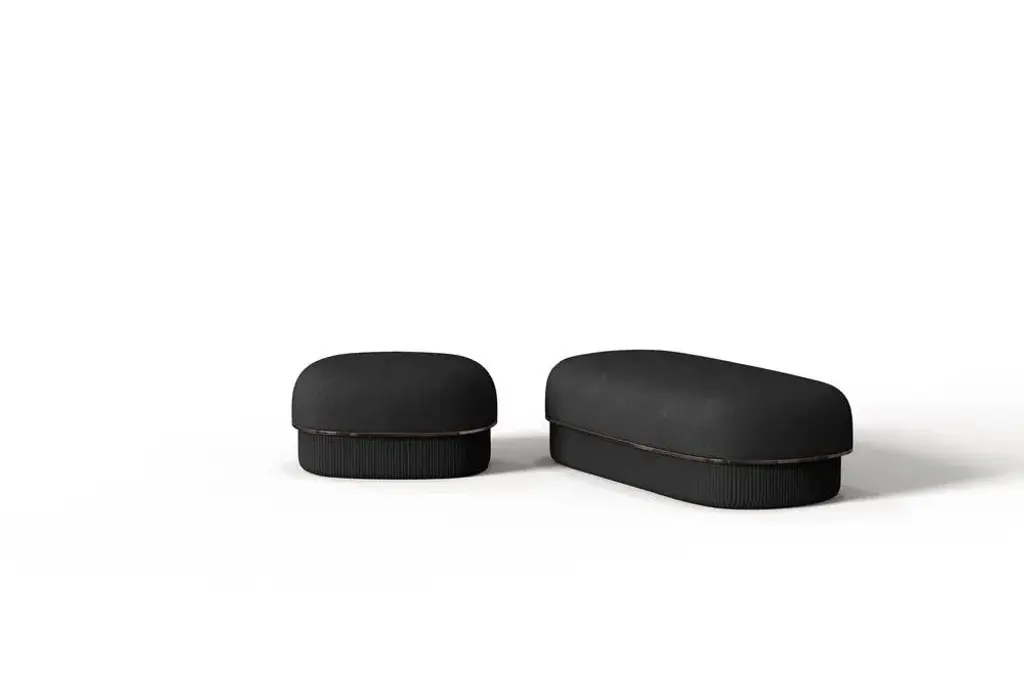 Modern Gentle Small Pouf In Black Fabric And Bronze Metal By Javier Gomez