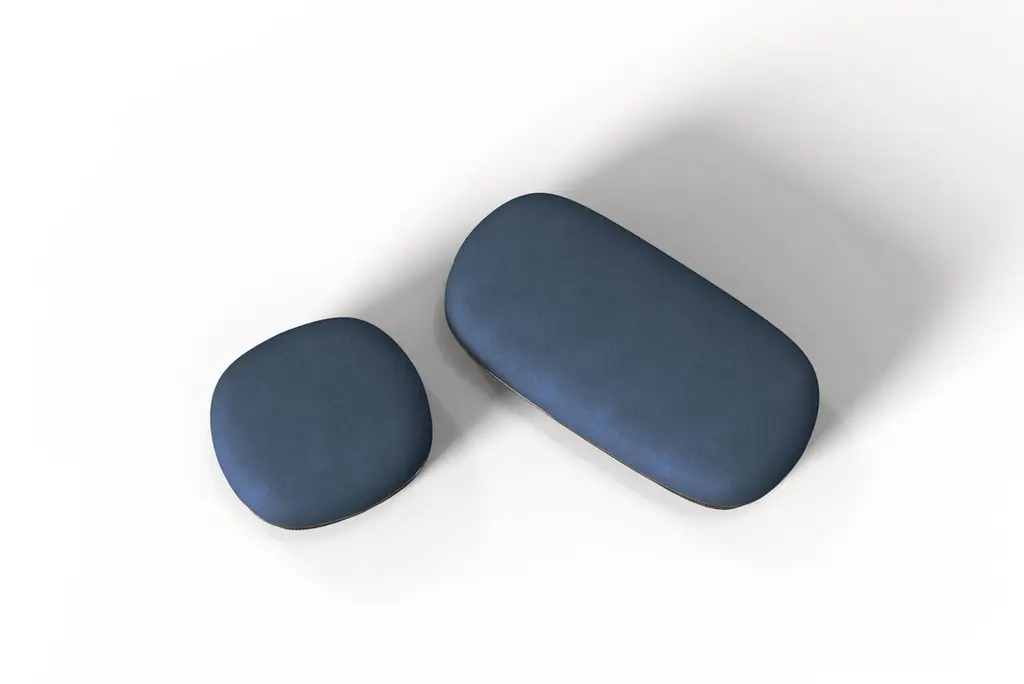 Modern Gentle Small Pouf In Blue Fabric And Bronze Metal
