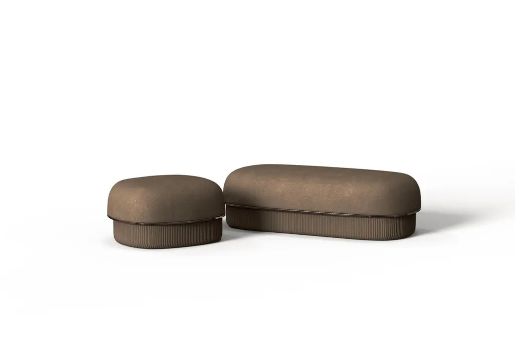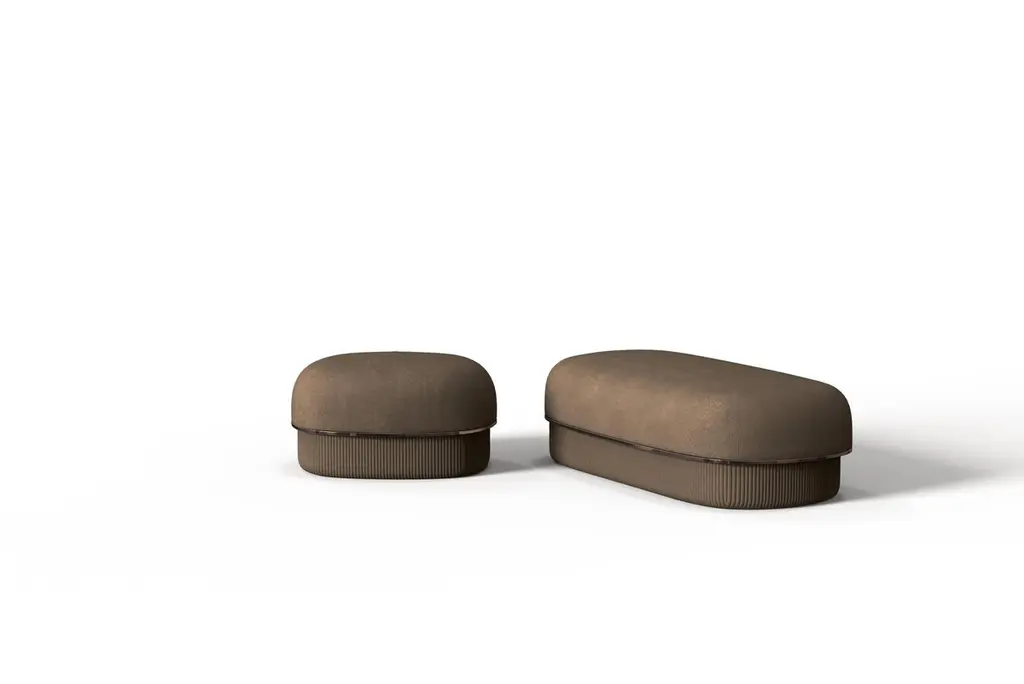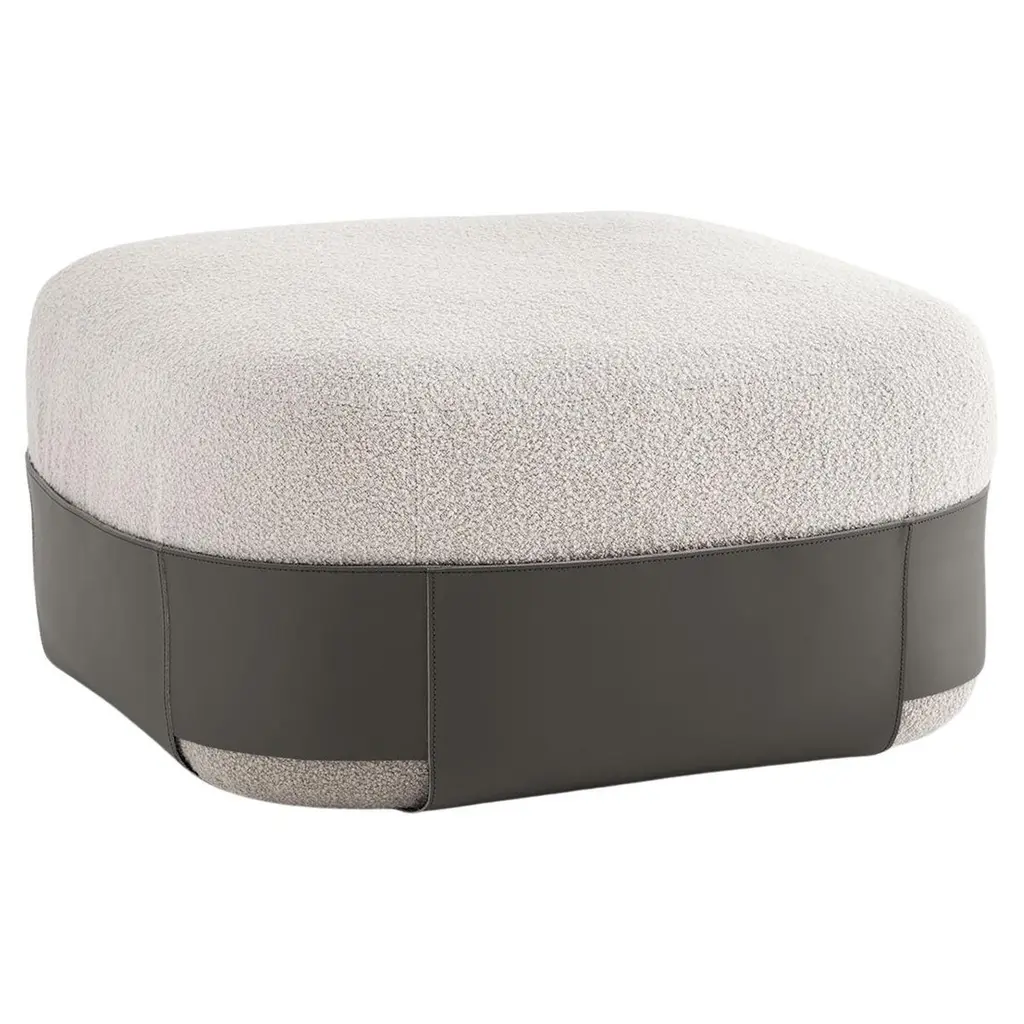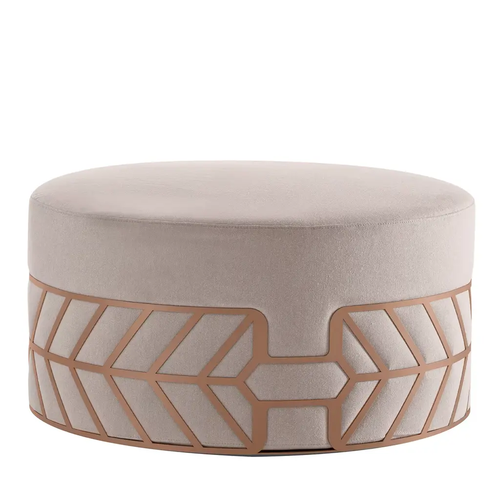The Modern Gentle Small Pouf is a perfect blend of elegance and functionality. Its smooth, upholstered top is complemented by a quilted leather base with vertical stitching, creating a striking 3D texture. A bronze metal ring adds a refined, reflective accent, enhancing its sophisticated design. Compact yet stylish, this pouf is a versatile addition to any contemporary space.The height and dimensions of each piece can be customized to suit your needs.