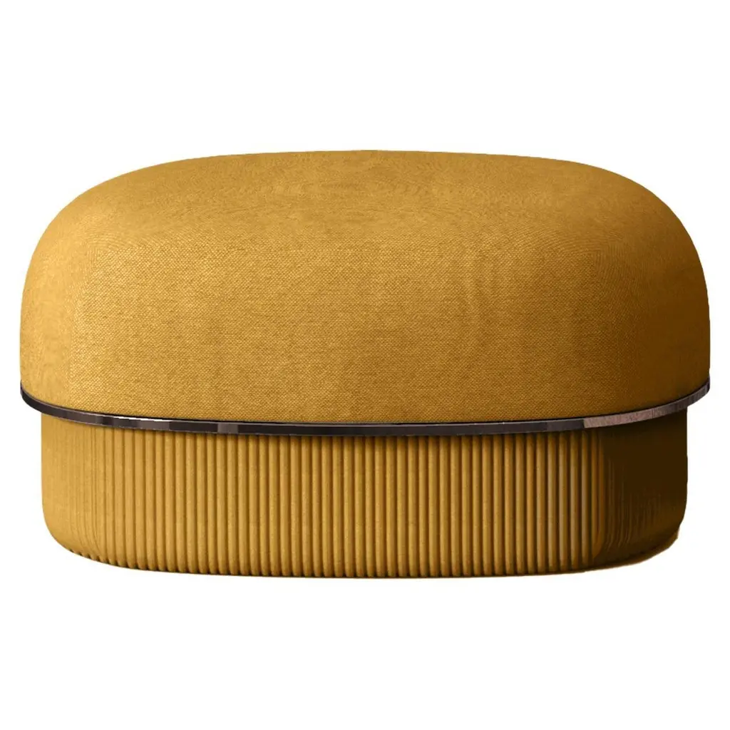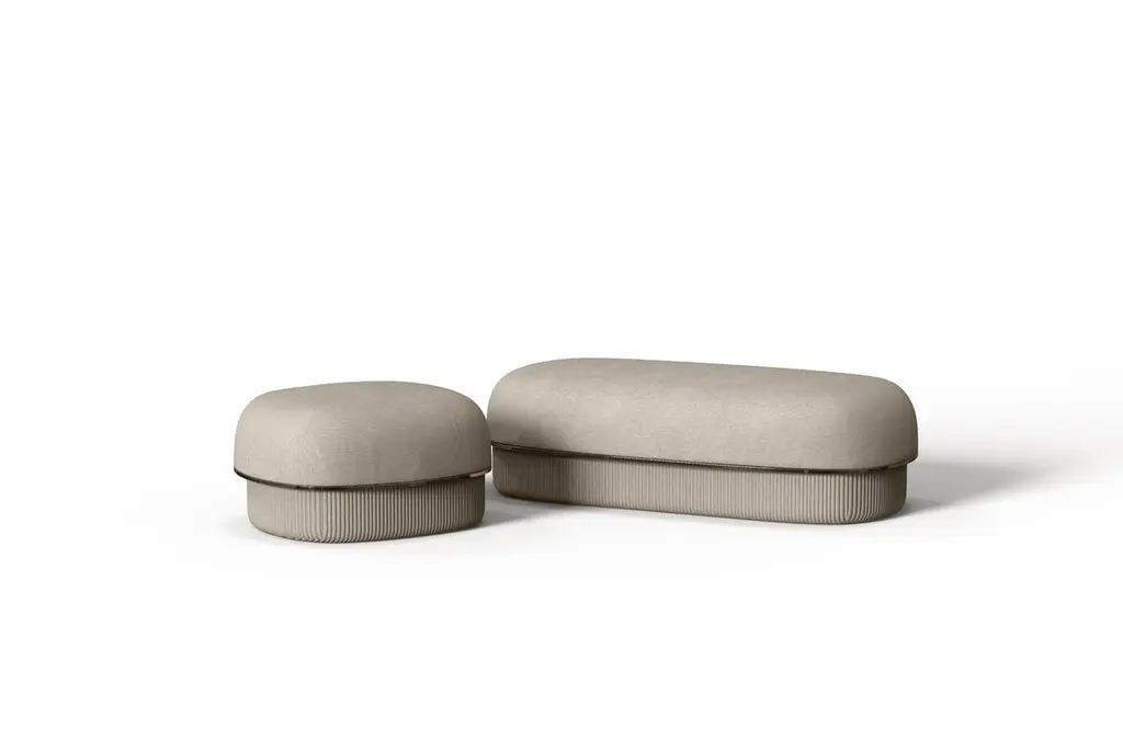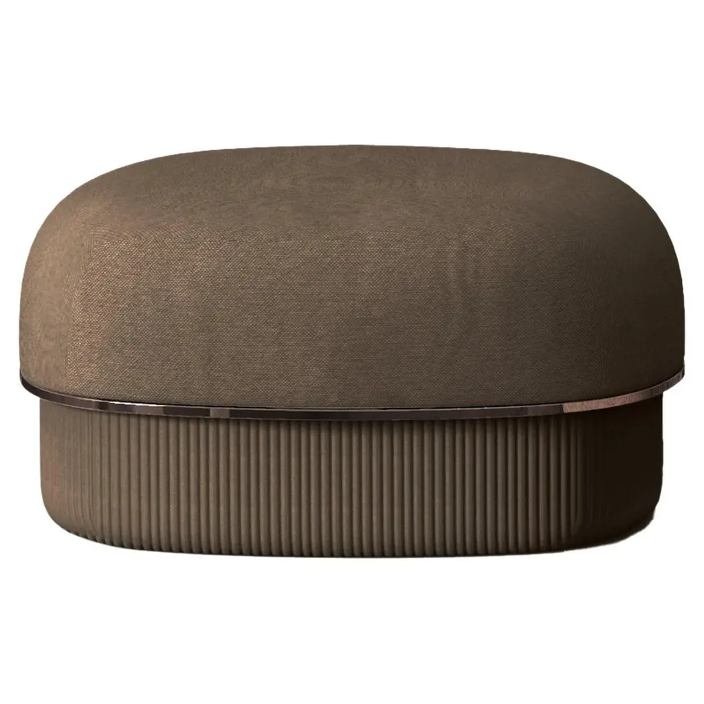 The Modern Gentle Small Pouf is a perfect blend of elegance and functionality. Its smooth, upholstered top is complemented by a quilted leather base with vertical stitching, creating a striking 3D texture. A bronze metal ring adds a refined, reflective accent, enhancing its sophisticated design. Compact yet stylish, this pouf is a versatile addition to any contemporary space.The height and dimensions of each piece can be customized to suit your needs.