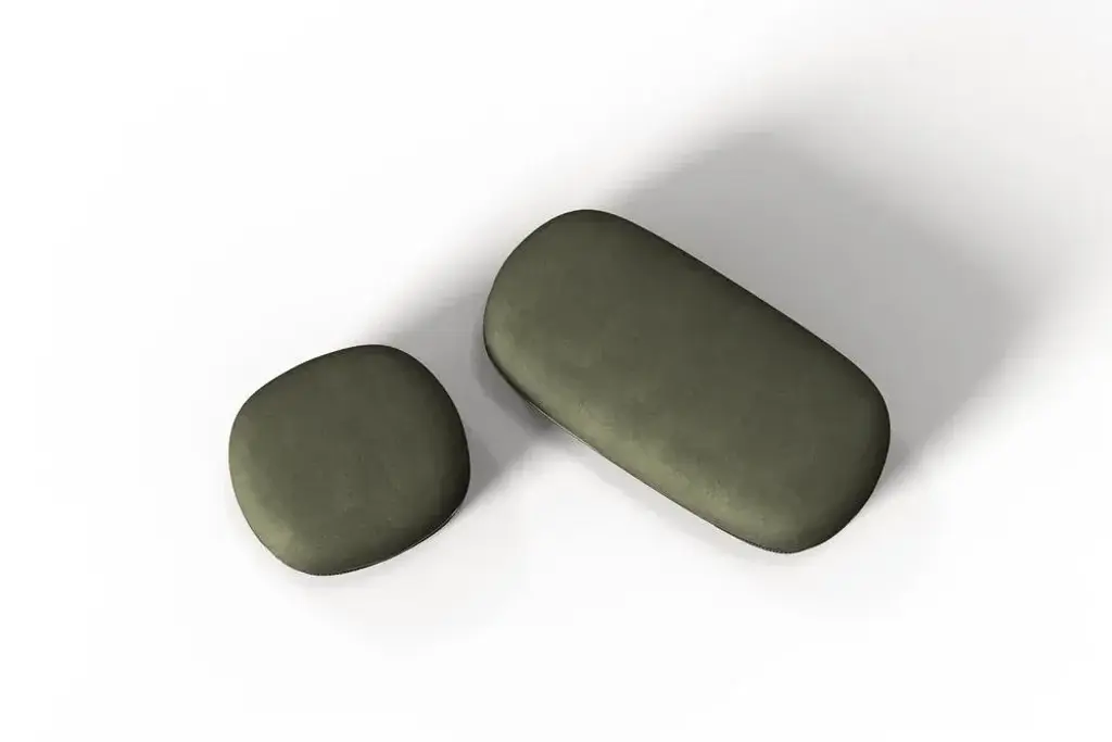 Gentle was born from the desire to combine a simple and comfortable shell with a decorated and characterizing base. In fact, the base is made of quilted leather with vertical stripes, giving a 3D effect to the product. The metal ring that divides the two parts marks a boundary between the 3D material and its smooth version. A line capable of reflecting light like a body of water capable of giving movement and distorting the reflected image.