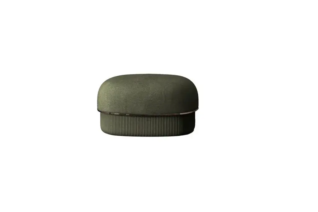 Modern Gentle Small Pouf In Green Fabric And Bronze Metal By Javier Gomez
