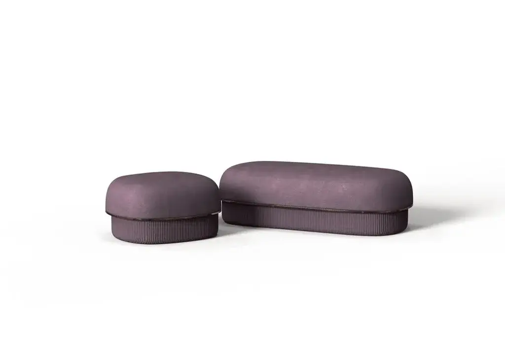 Modern Gentle Small Pouf In Purple Fabric And Bronze Metal By Javier Gomez