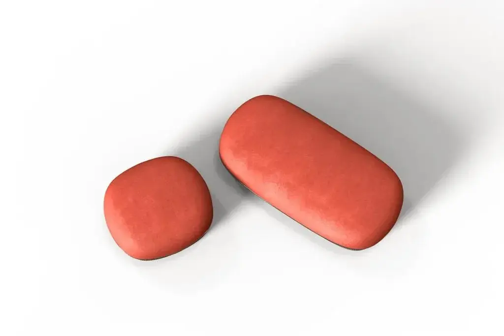 Gentle was born from the desire to combine a simple and comfortable shell with a decorated and characterizing base. In fact, the base is made of quilted leather with vertical stripes, giving a 3D effect to the product. The metal ring that divides the two parts marks a boundary between the 3D material and its smooth version. A line capable of reflecting light like a body of water capable of giving movement and distorting the reflected image.