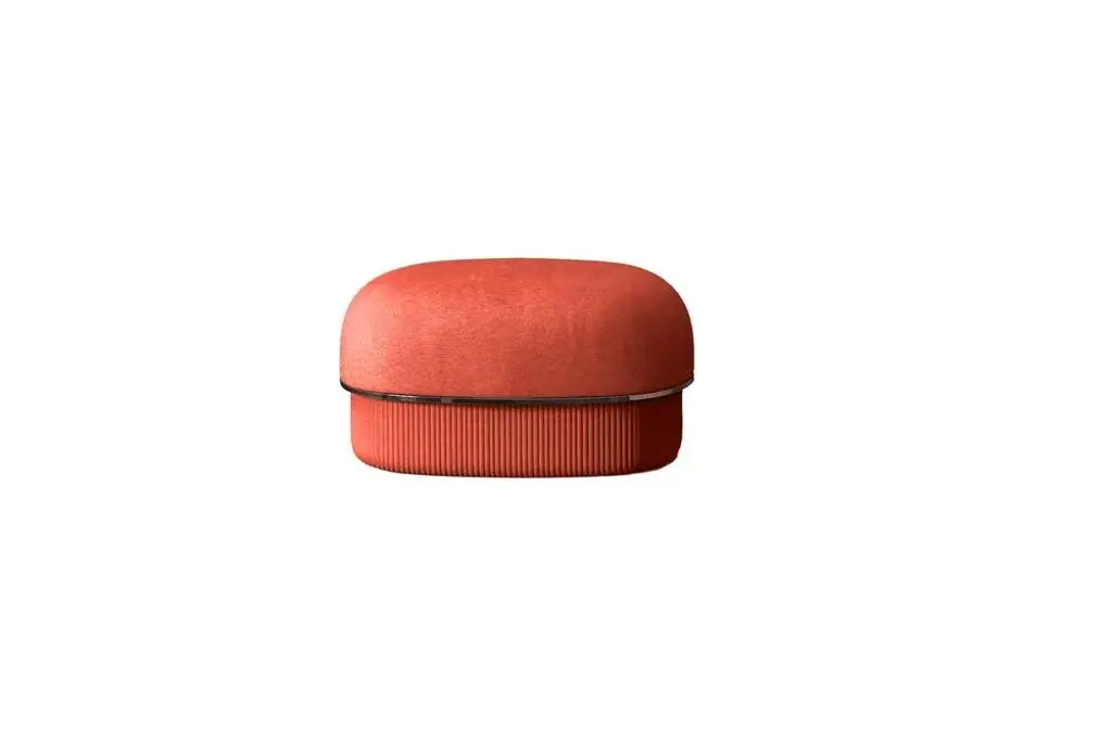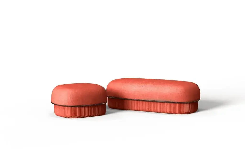 Modern Gentle Small Pouf In Salmon Fabric And Bronze Metal By Javier Gomez