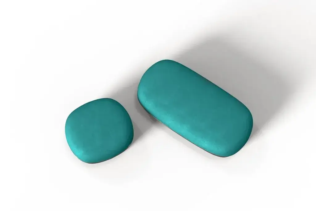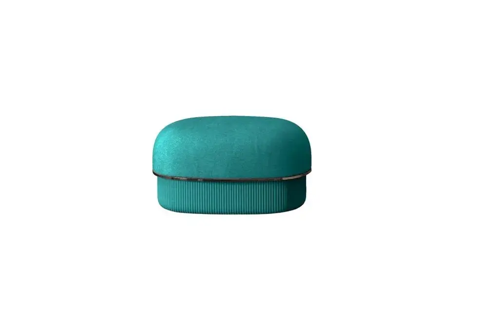 Modern Gentle Small Pouf In Teal Fabric And Bronze Metal By Javier Gomez