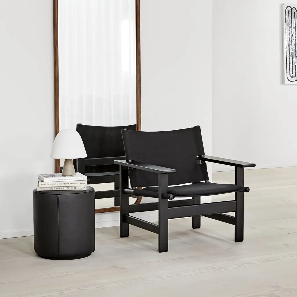 Design Team Due & Trampedach indulge in some singular thinking with Mono. The pouf, in a range of 3 sizes, offers a multitude of possibilities, as an appealing seating option, side table, footrest or decorative accent. The pristine cylindrical shape in the different circumferences and heights lends itself to any number of upholstered treatments, from fine textiles to buttery leather.
