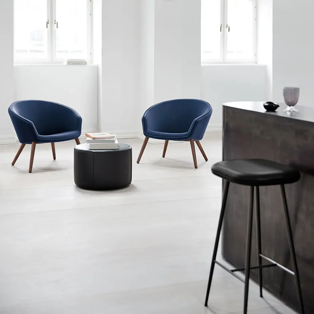 Mono Pouf is a singlular concept with a multitude of possibilities. Either as an appealing seating option, side table, footrest or decorative item, the cylindrical shape in different circumferences and heights makes Mono a welcome addition to any space. From retail and commercial venues to the hospitality and private sectors. The piping that appears along the sides of each pouf is a focal point of the design that involves our heritage of craftsmanship. A signature Fredericia detiail, the piping adds to the aesthetics while ensuring that all the seams remain intact. Together with a beauitiful patina that will emerge with use, it all contributes to a design that will age with grace.