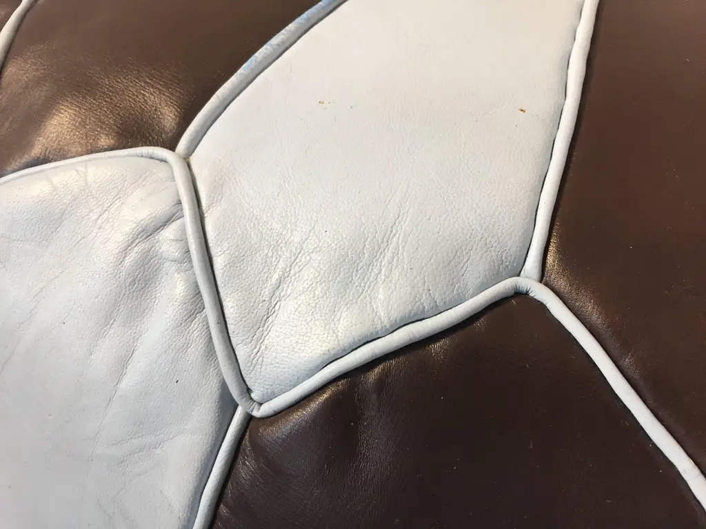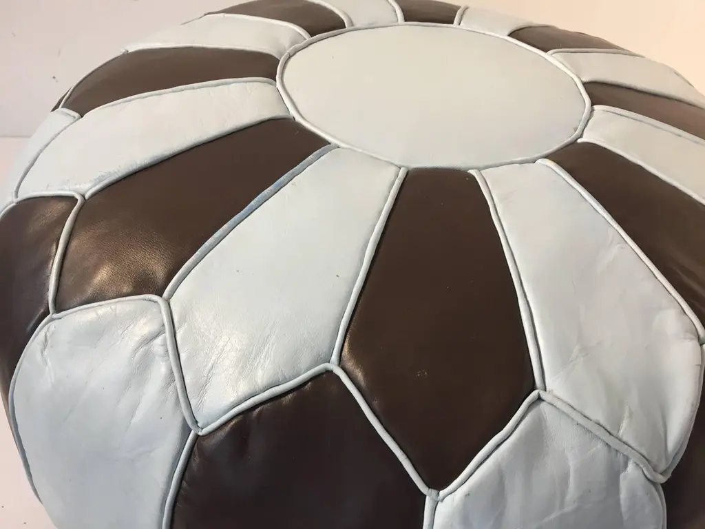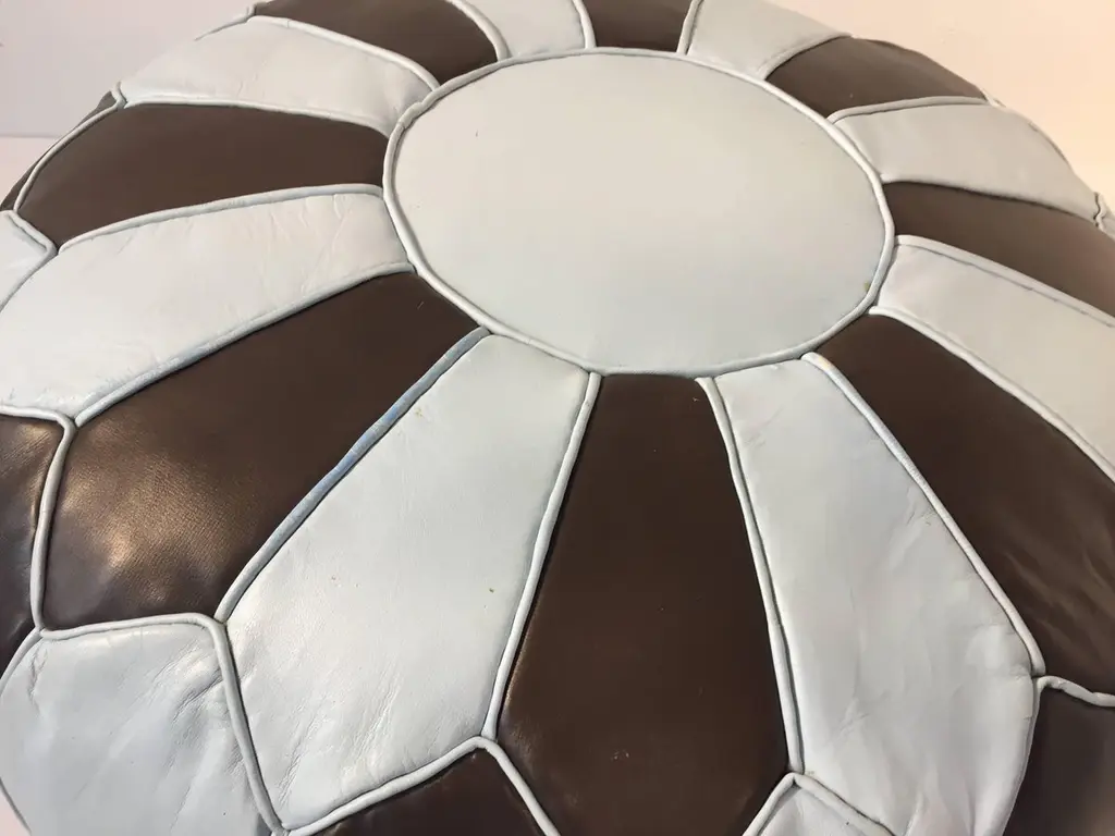 Moroccan Round Leather Pouf Hand-Tooled In Marrakesh