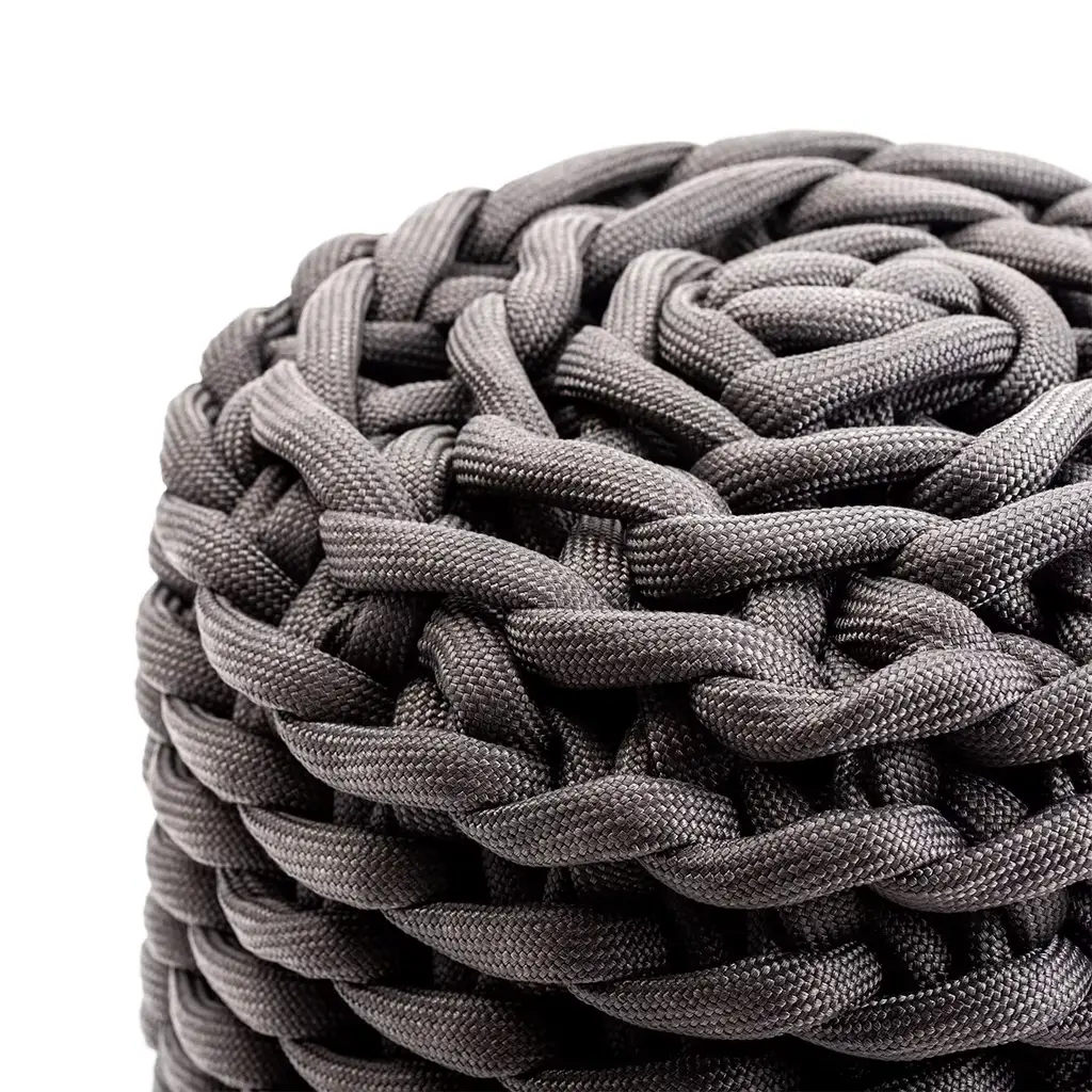 This round pouf, designed by Rosanna Contadini, offers a sophisticated and stylish addition to outdoor spaces. It is handmade of waterproof materials (polypropylene, polystyrene, and Lycra fiber) and covered in deftly hand-knotted 22mm-thick gray-colored polypropylene rope. Its compact design underscores its versatility: it can be used as a footstool, additional seating, accent table, or decorative accessory. Please contact the Concierge for more details.