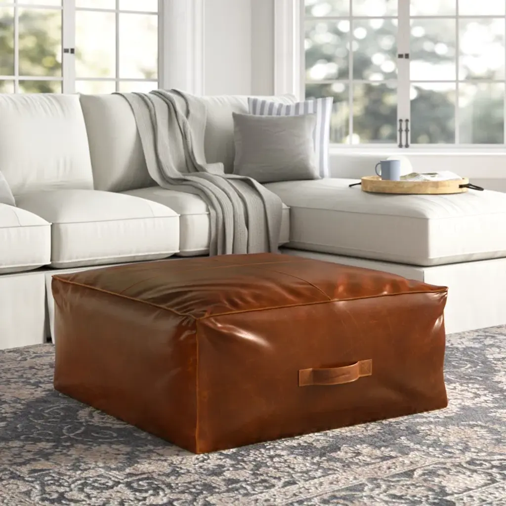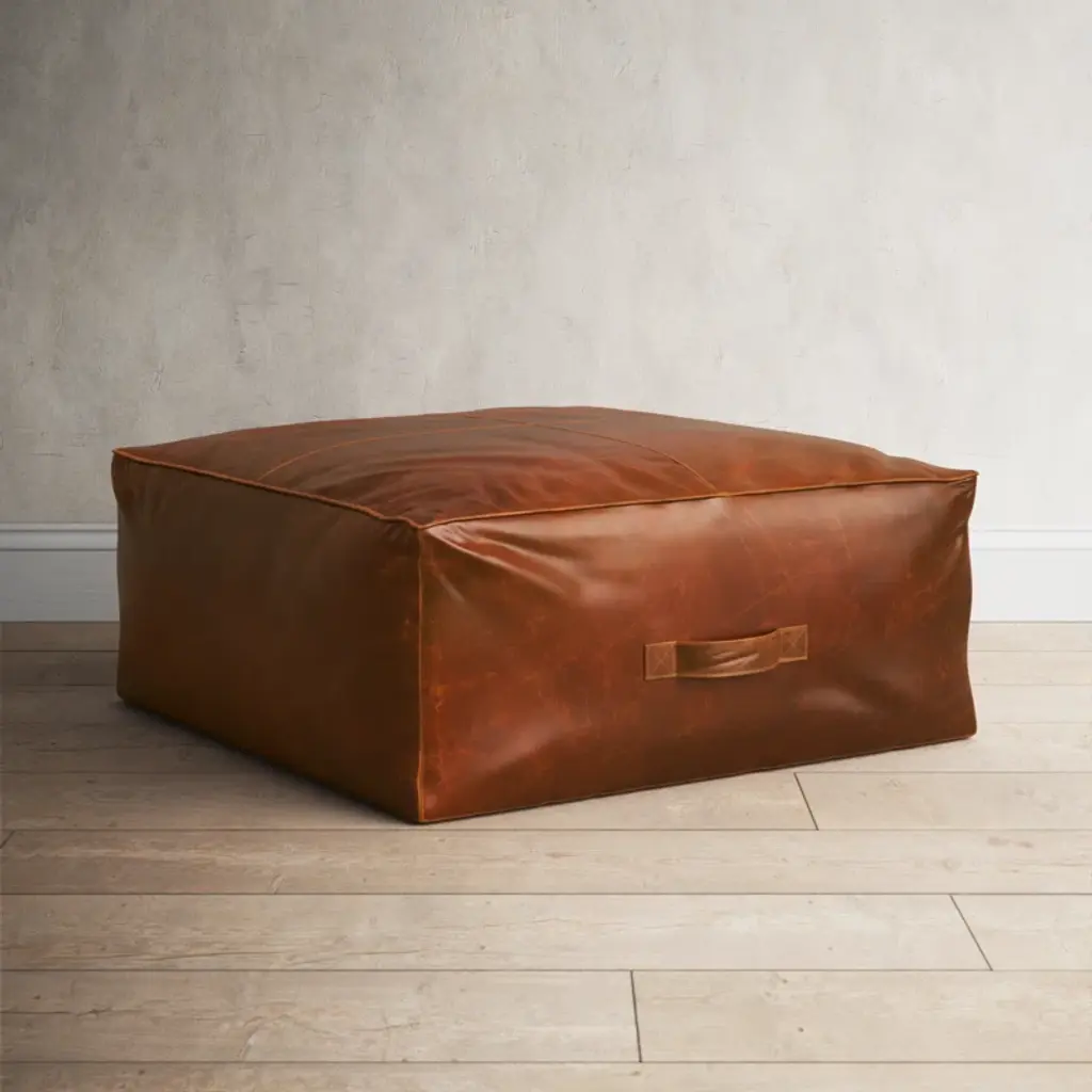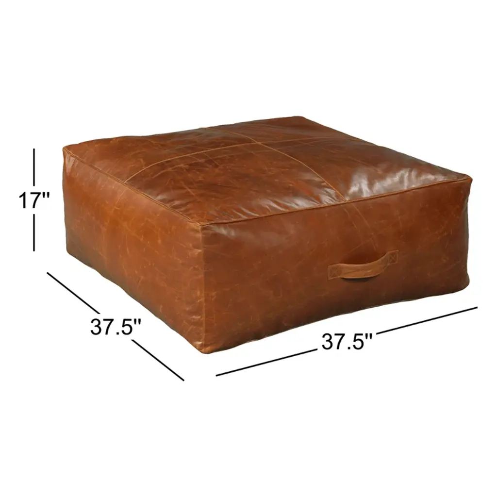 This leather pouf, crafted from genuine full-grain leather, offers a luxurious touch to any contemporary interior. Its generous size and supportive cotton fill provide a comfortable foot rest or extra seating option. Enjoy the enduring appeal of natural leather, effortlessly complementing your modern aesthetic.