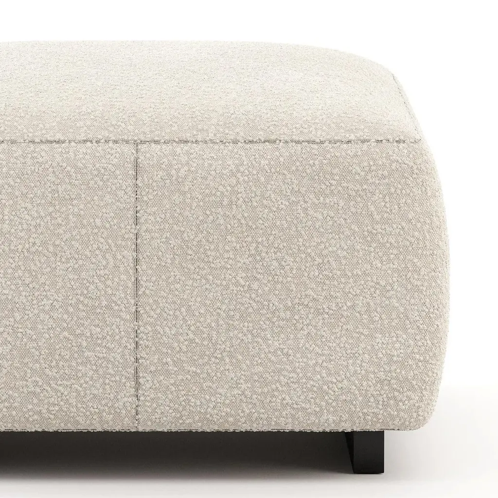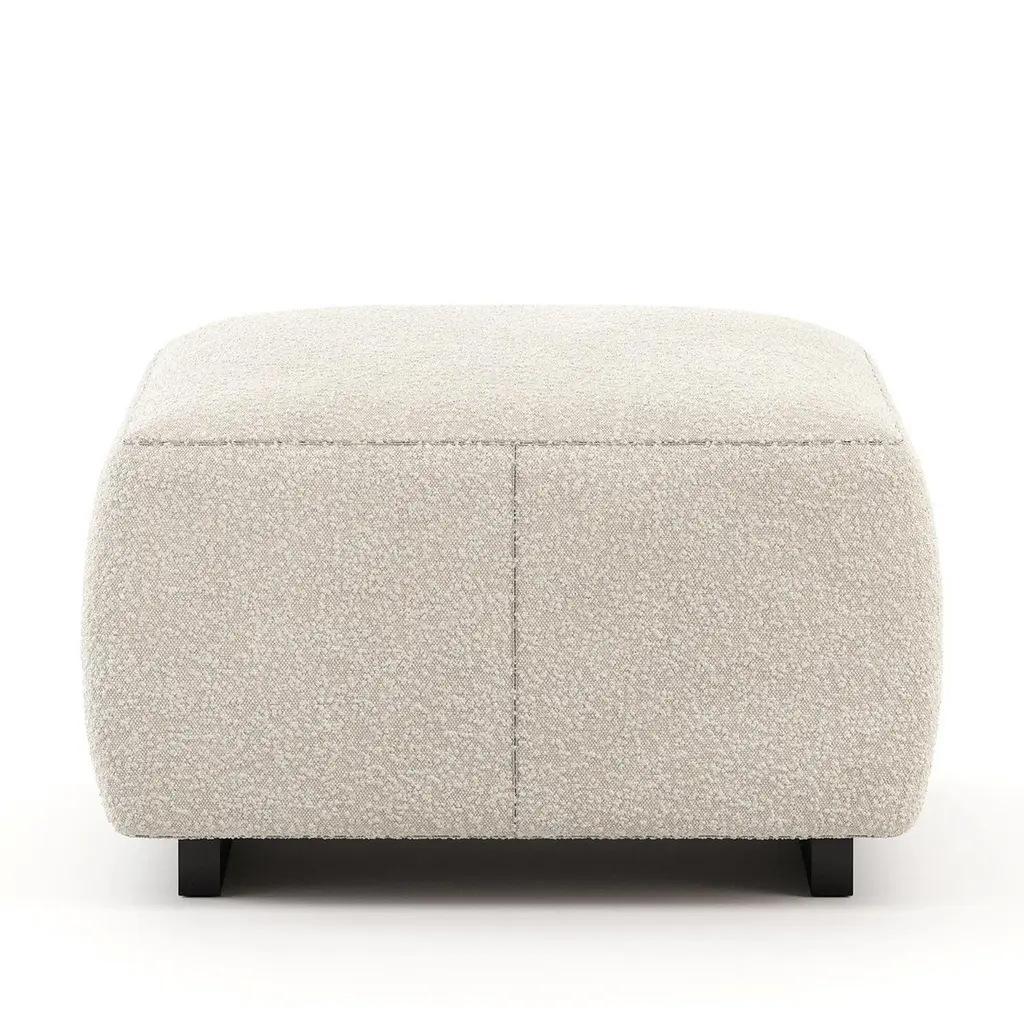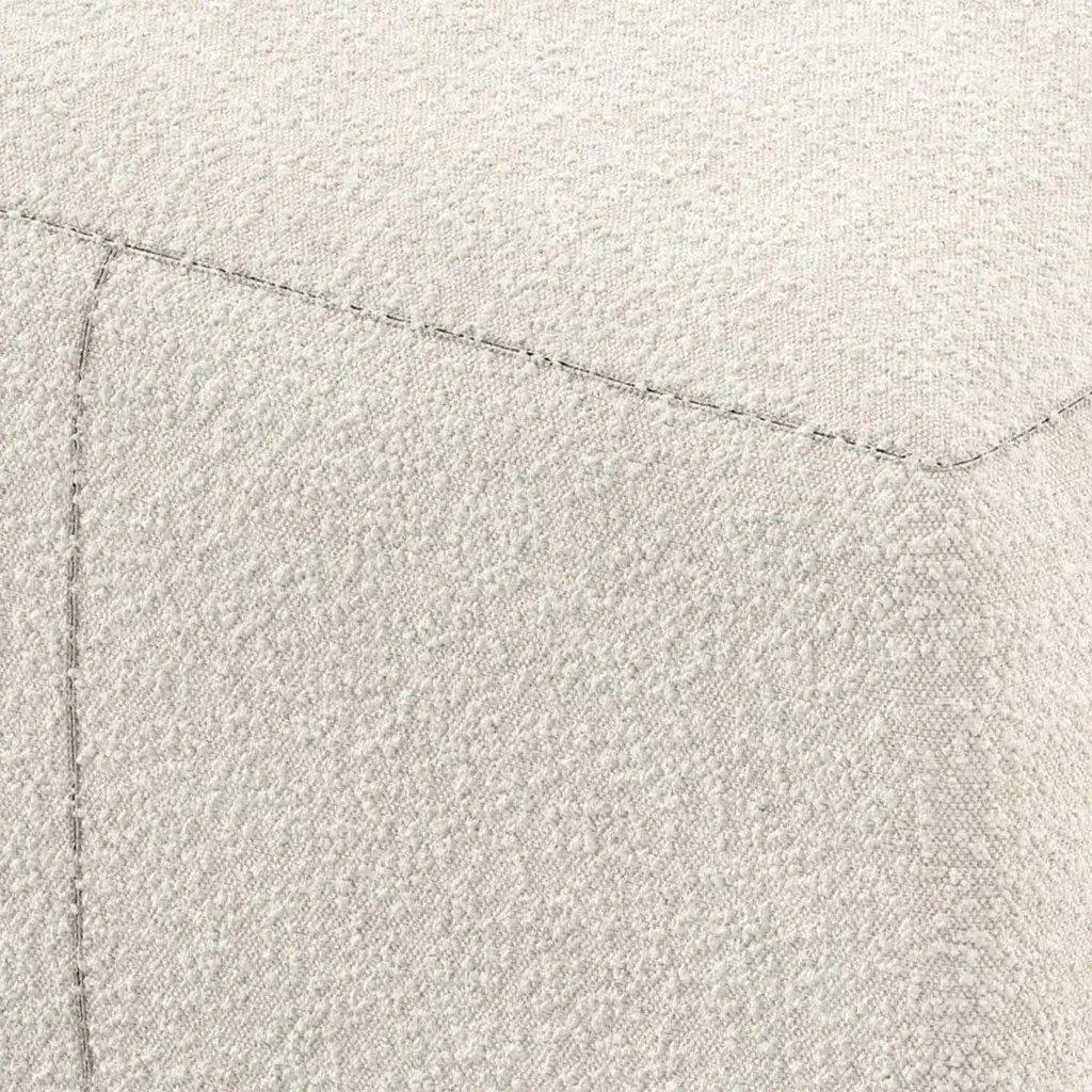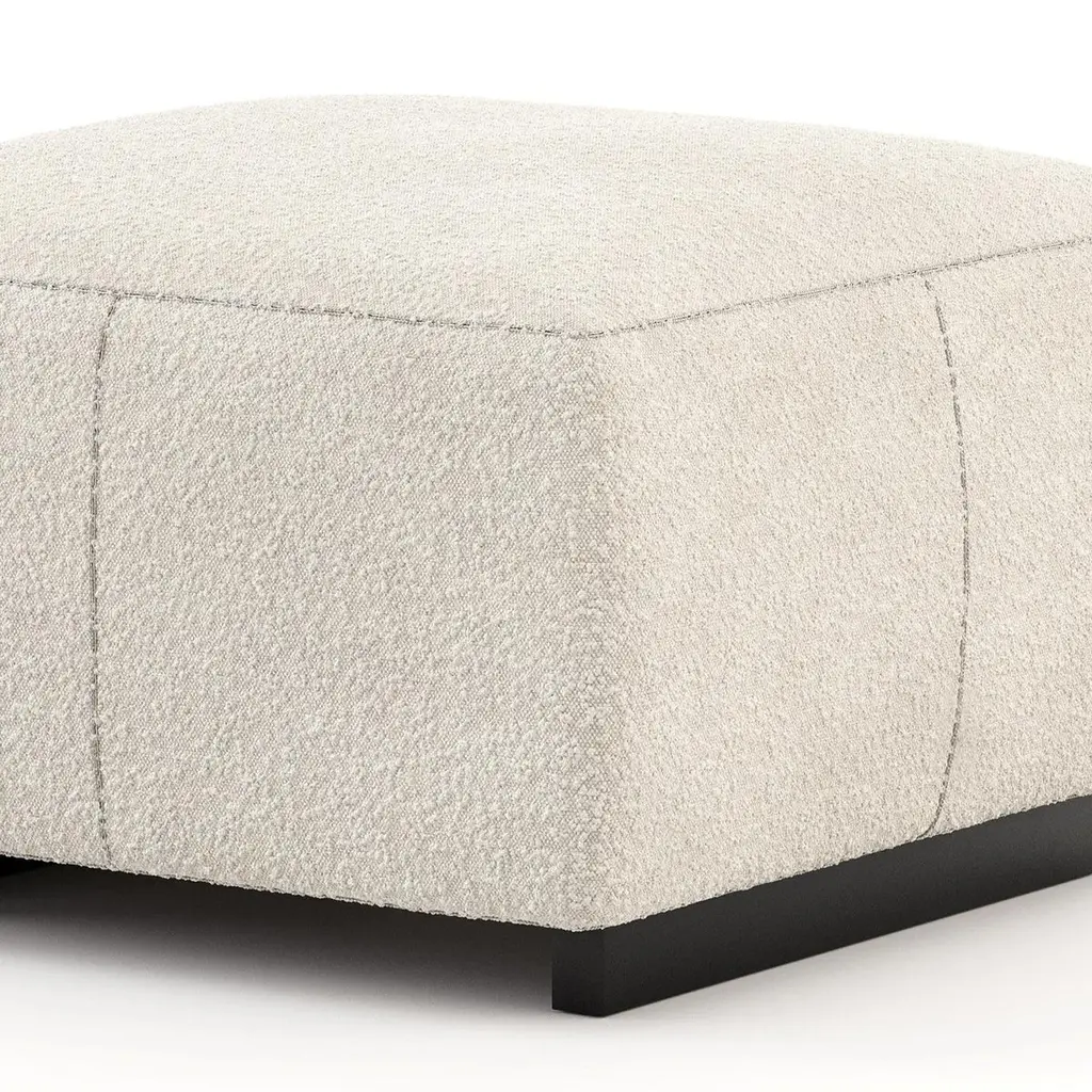 Pouf Nucci with wooden structure, upholstered andcoverd with white pearled fabric and with 2 feet basein blackened steel.Also available with other fabrics or leather, on request.
