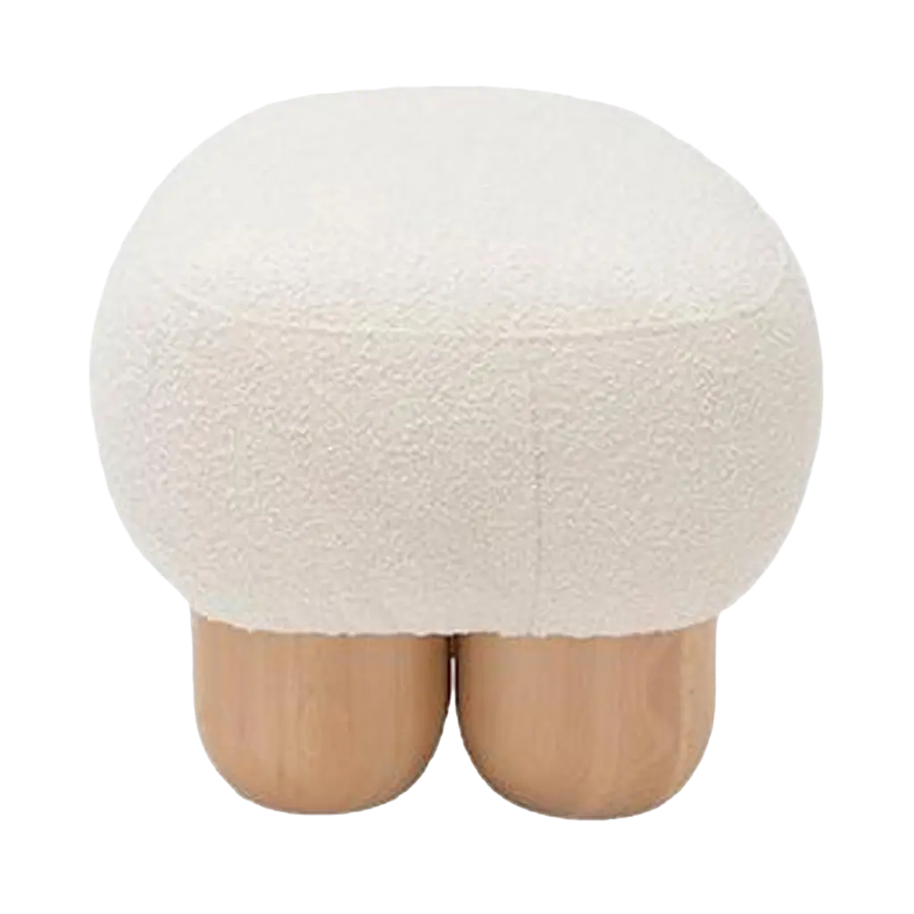 Object 049 pearl pouf by ng design dimensions: d64 x w51 x h41 cm materials: boucle upholstery, solid oak