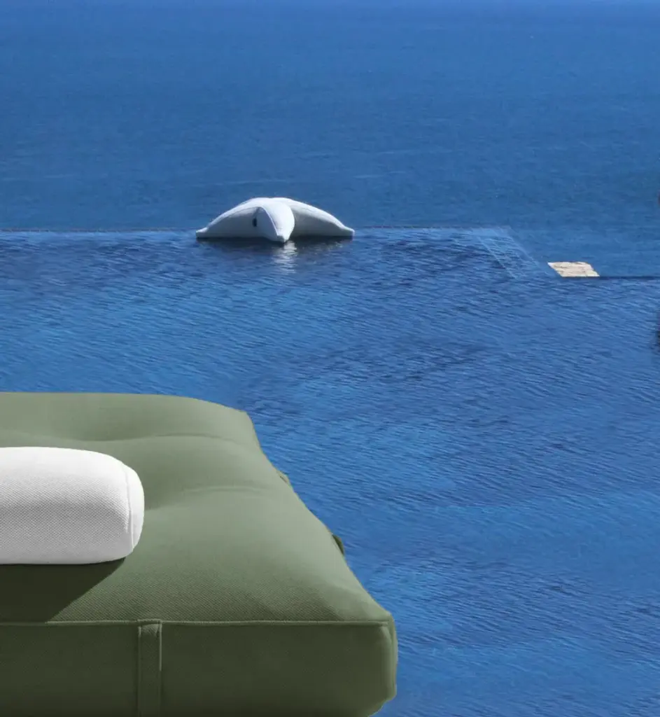 Lie down, rest, or let yourself be rocked by the pool water with BALI.This sober and minimalist design makes this piece a total must, which fits it with any surrounding, both indoors and outdoors, and is loved because of its pleasant and soft texture.Tentative measurements can vary up to a few centimetres depending on the fabric used.Coating: G2/24 | Sylvertex (100% Vinilo) Color: Bottle