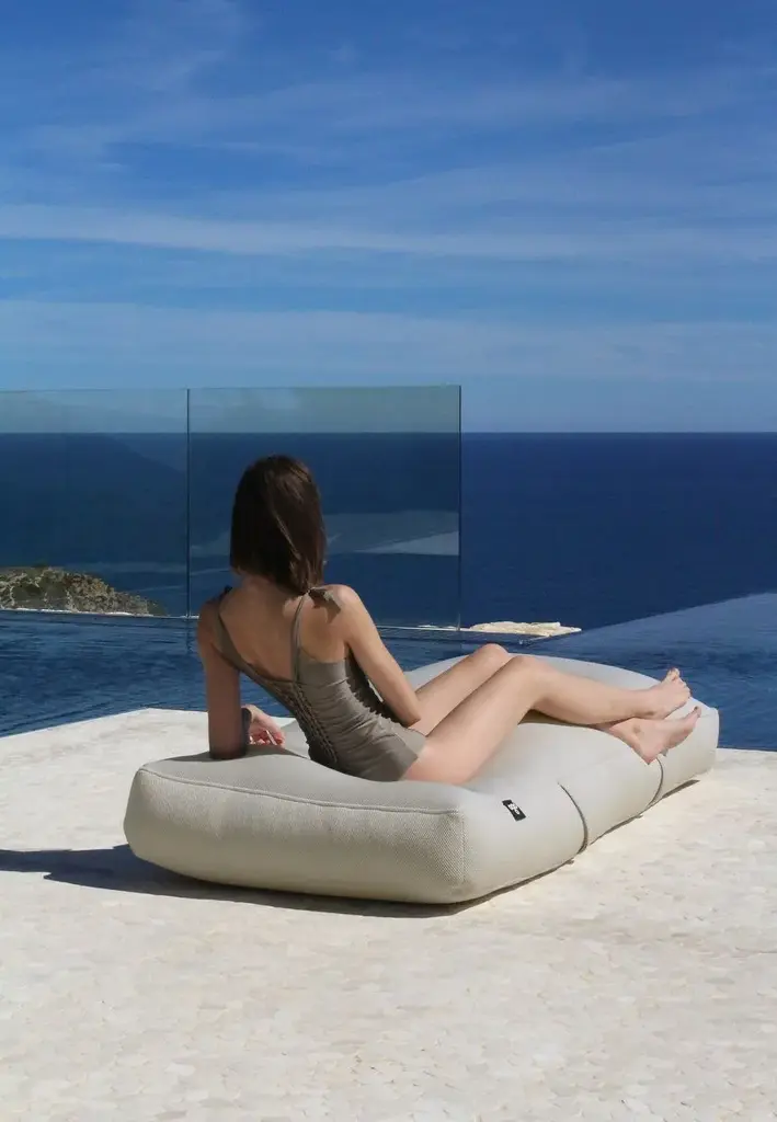 Lie down, rest, or let yourself be rocked by the pool water with BALI.This sober and minimalist design makes this piece a total must, which fits it with any surrounding, both indoors and outdoors, and is loved because of its pleasant and soft texture.Tentative measurements can vary up to a few centimetres depending on the fabric used.Coating: G1/24 | 3D Agora (70% PAN + 30% PES) Color: Sand